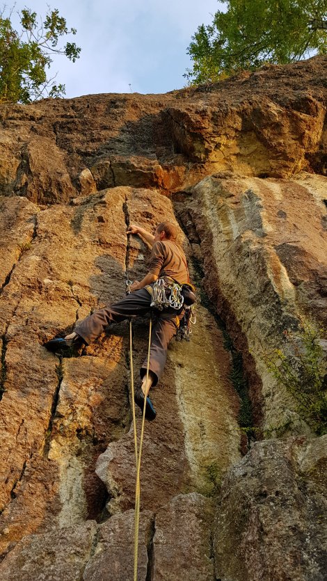 Dry and midge-free cragging and even some sunshine later on. We ticked at least a dozen routes between us, including a couple of top 50 classics, and even a route by Tappers! Only the setting sun and thoughts of beer dragged us away from the crag!