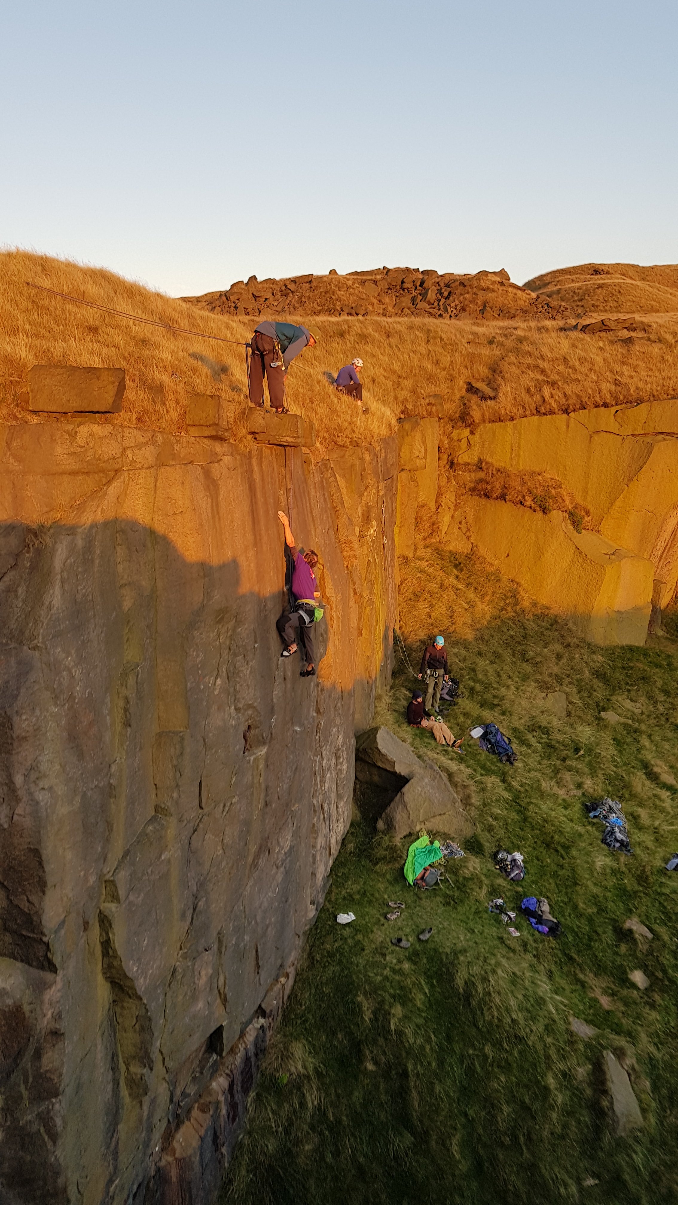 Andy’s lead of Spanner Wall was the high point of the evening (tough even on a top rope) and Jeff’s ascent of Plumb Line was a great effort, despite the dodgy shoulder. Climbing until the sun went down. Grand!