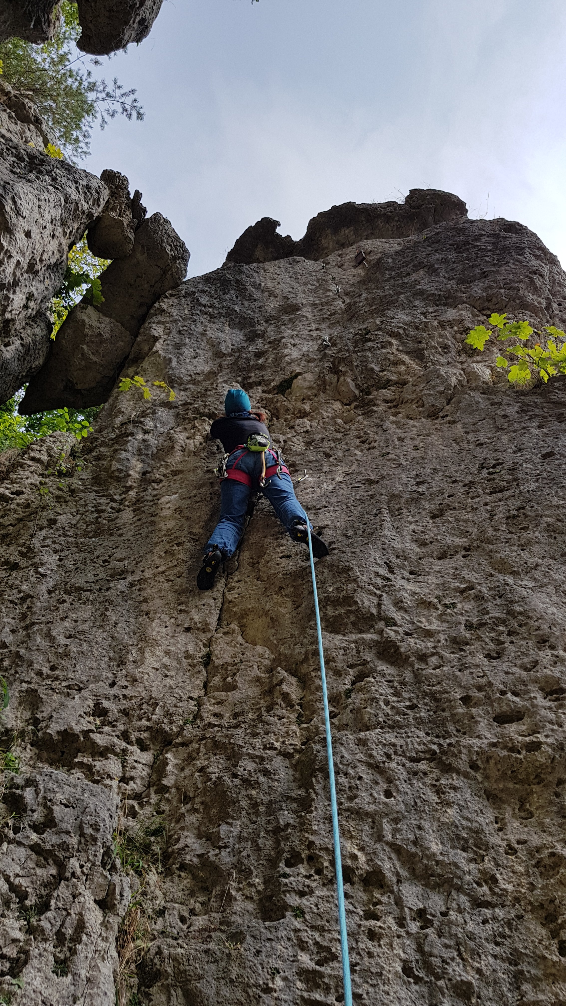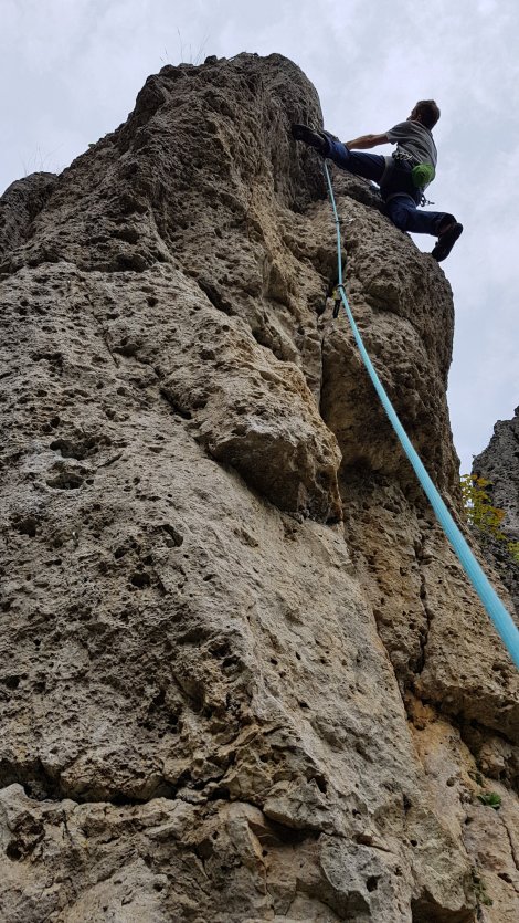 It’s a bit grey the next morning and after a late start we arrive at one of the hundreds of crags hereabouts. Hohe Reute has a couple of dozen routes and lots of stars.