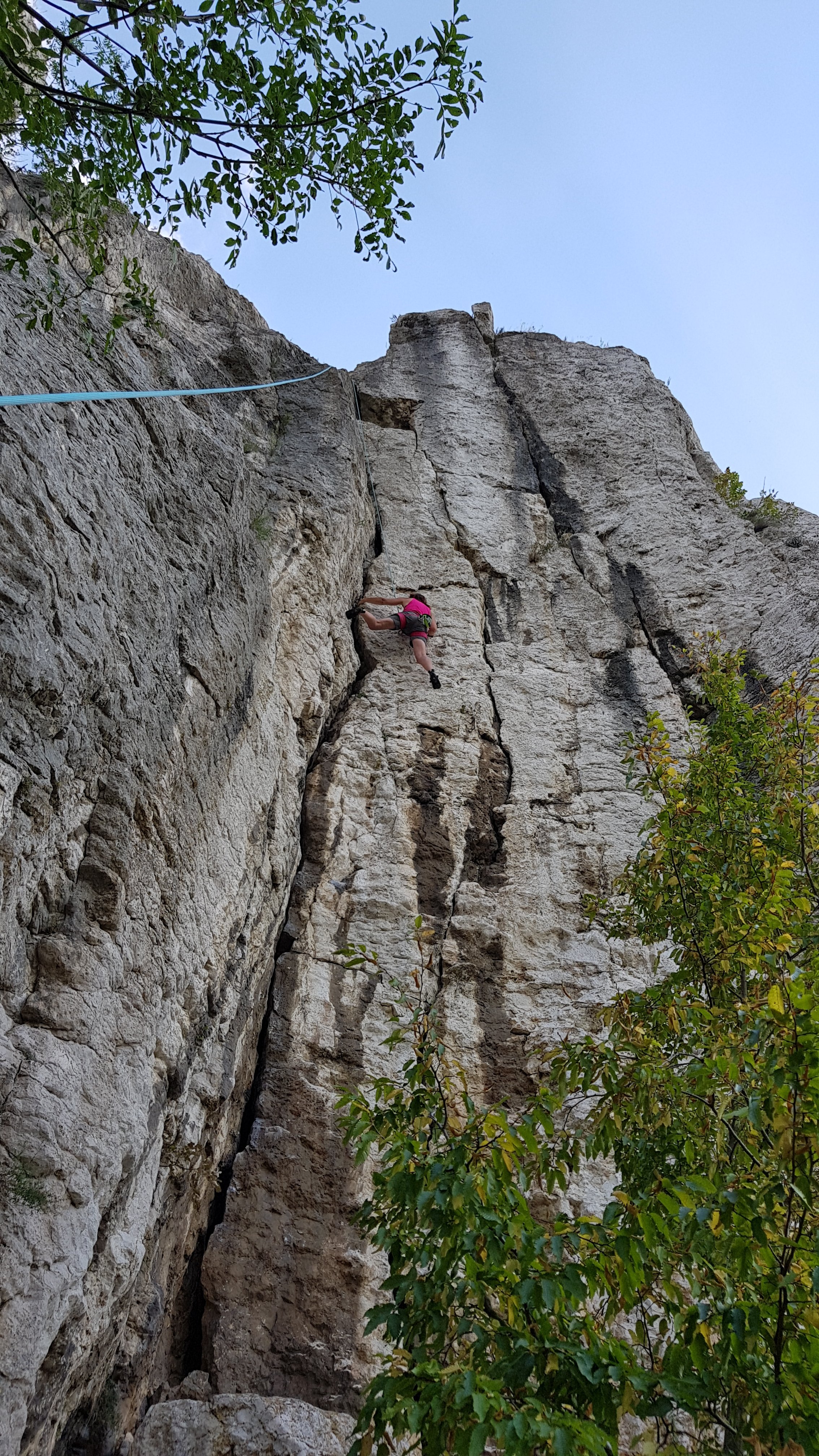 … and I threw myself at the 7a+ monster crack up the overhanging headwall to the right. Painful finger locks (and fear of leaving one behind should a foot slip!) meant I ground to a halt at about 2/3 height. Still, we’d opened our account on Bulgarian rock and there looks to be more worth coming back for.