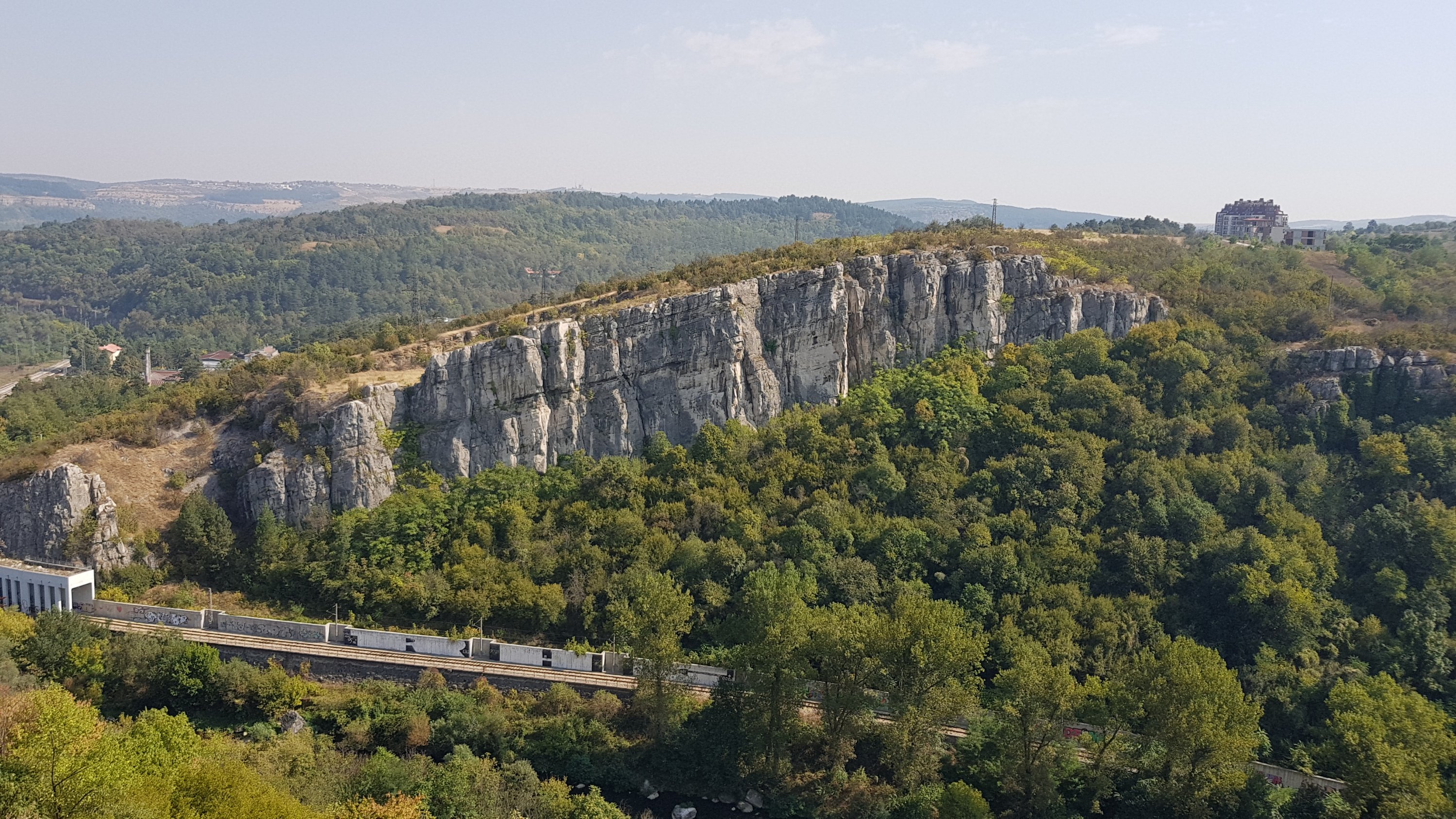 Anyway, once around the monestary, a reasonable path skirts the foot of the crag with branches (sometimes marked by cairns or even wooden steps) leading up to the various sectors. In our eagerness to do a route we struck up to the first bit of rock and got totally shut down by an alleged 6a crack Golyamata zalesia which someone had scrawled 7a in biro beneath, which felt more like it in the blazing sun.