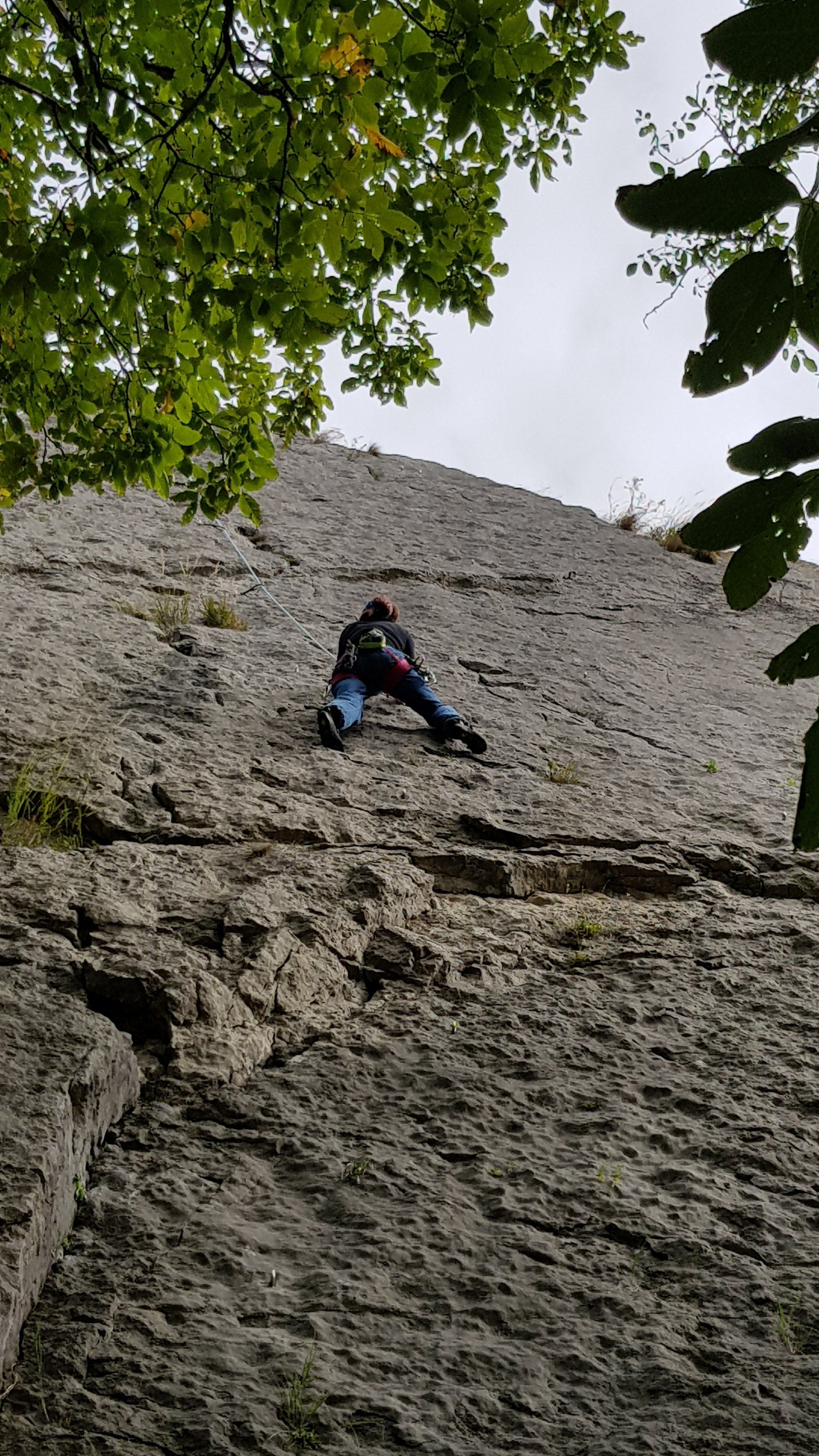 A slightly chilly morning, but we weren’t alone in wanting to get some cragging done. We were a bit restricted in not wanting to abandon the van, but there are a couple of roadside sectors where at least we could sample the climbing.