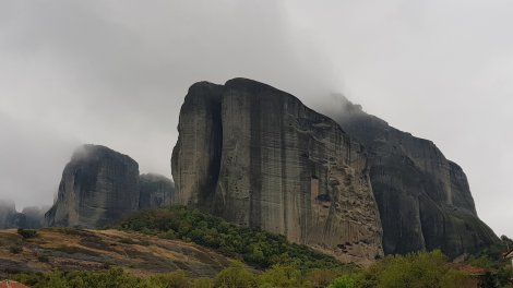 A few days of rubbish weather here in Meteora – maybe worth binning the new belay device! Atmospheric spot in the drifting clouds though – definitely “suspended in the air” at the moment.