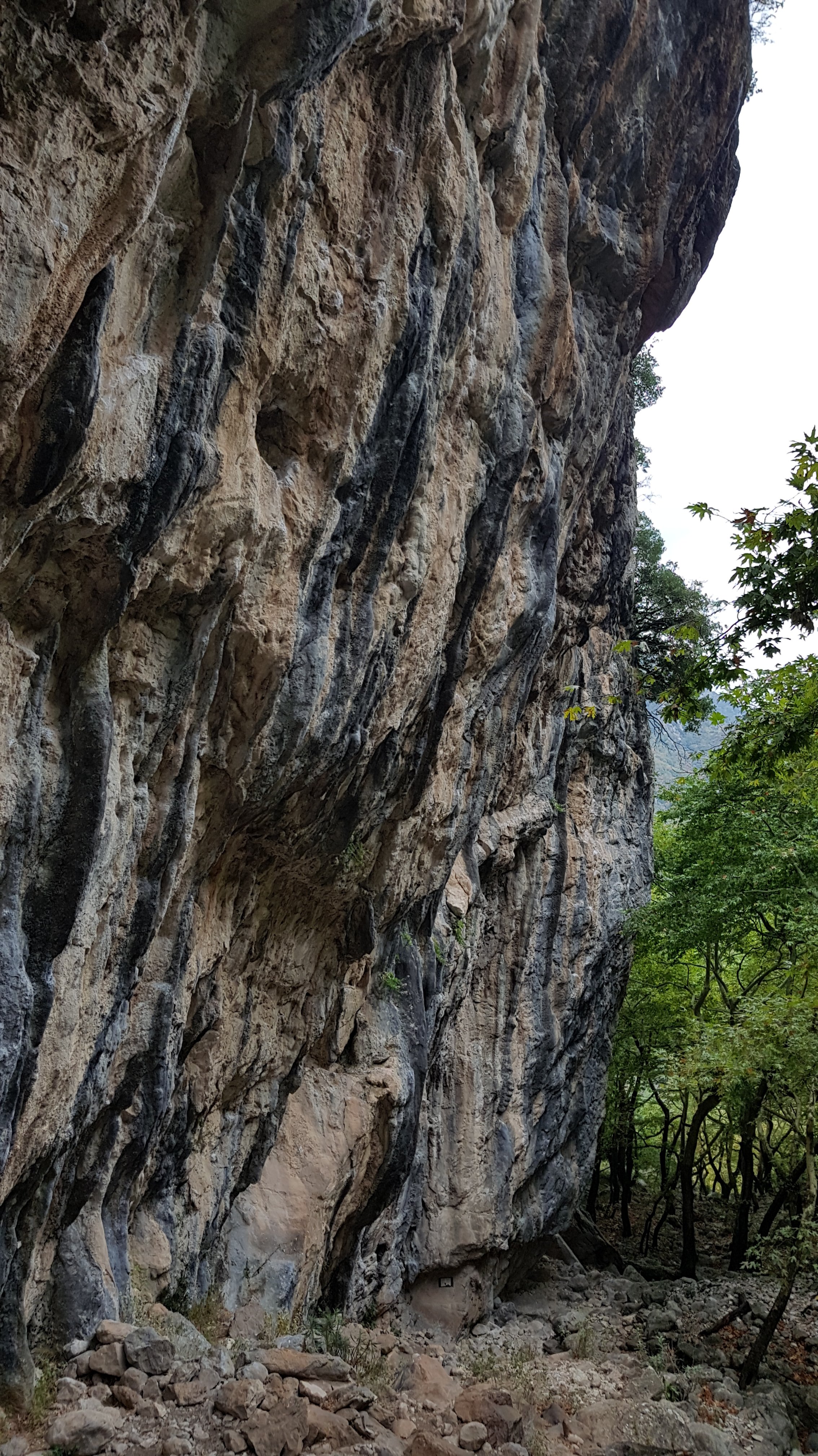 After a day of mooching around, cheered up with dinner at Taverna Paradisos run by the local climbing guru, we decided to make a day trip to nearby Pyli in search of dry rock. Plenty steep enough to stay dry regardless, though it wasn’t actually raining (probably a bit TOO steep for us to get the best out of it), though a few of the tufas were a bit damp.