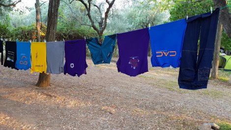 We’ve based ourselves on the coast about 20km west of Patras – pleasant enough campsite, but not a patch on the last couple of nights parked up by the sea. Good views of Varasova (between the beach brollies)