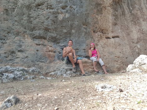 An early lunch break was called whilst we waited for the crag to come into the shade – bread, cheese and olives (as always!)