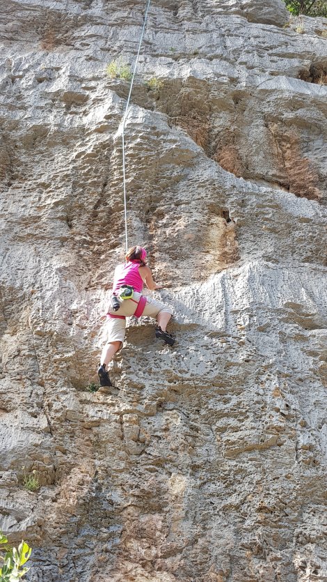 A couple more similar routes on the same bit of wall then a battle with a very good but tough 6c I Psilli which ground to a halt at a mono side pull on a razor sharp pocket – not worth losing a finger on!