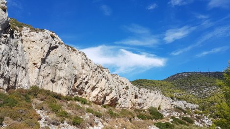 Jake got in on the “red eye” around 1am so we’d packed him off to an airport hotel for the night and picked him up at 10am this morning. Sesi is one of Athens most popular crags and only 15km from the airport. Any concerns about it being built-up or over flown were quickly dispelled, and the last 3km of dirt road delivered us high into a side valley on Mt. Hymettus.
