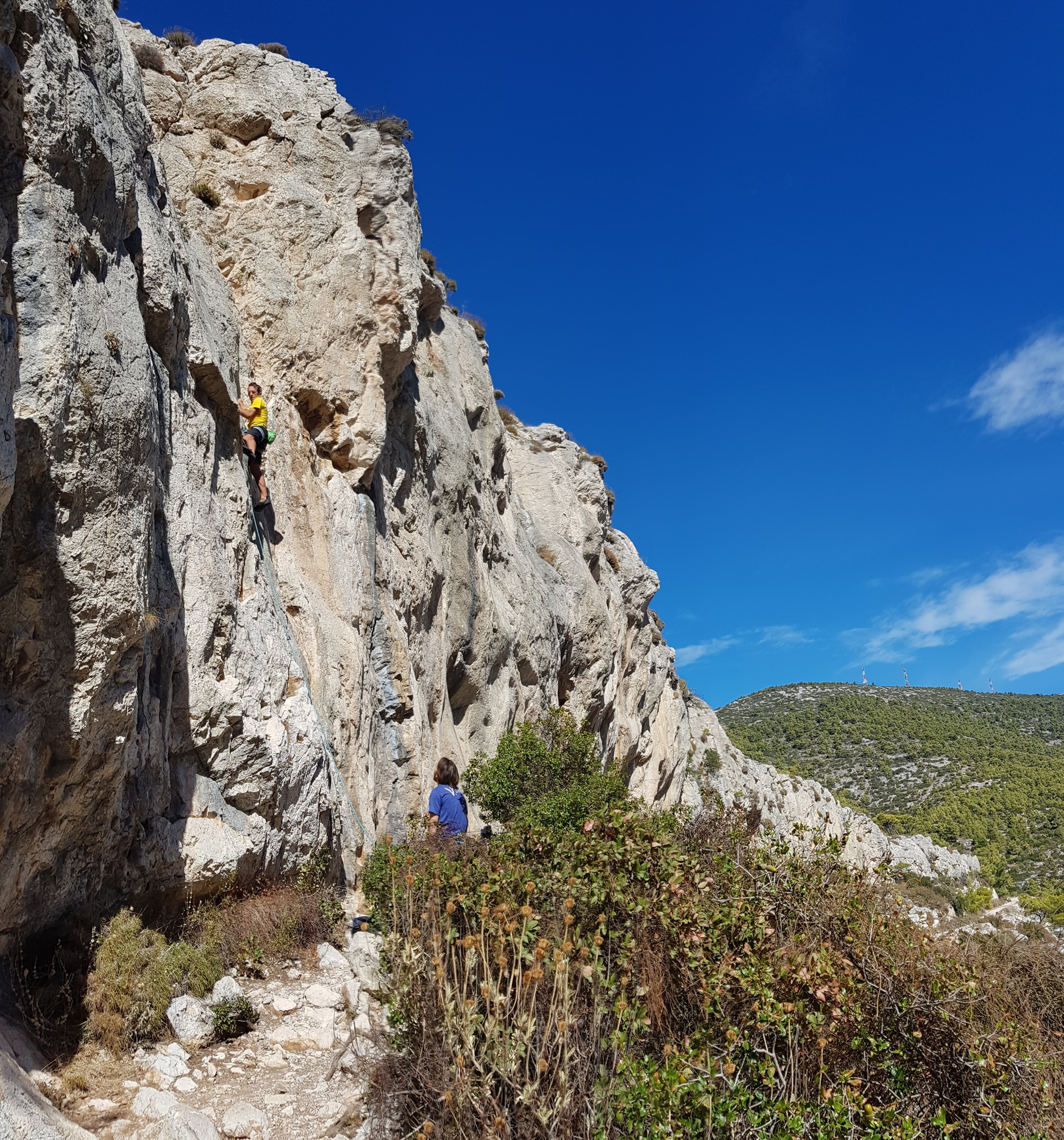 Jake got in on the “red eye” around 1am so we’d packed him off to an airport hotel for the night and picked him up at 10am this morning. Sesi is one of Athens most popular crags and only 15km from the airport. Any concerns about it being built-up or over flown were quickly dispelled, and the last 3km of dirt road delivered us high into a side valley on Mt. Hymettus.