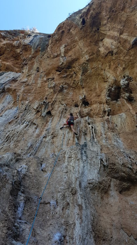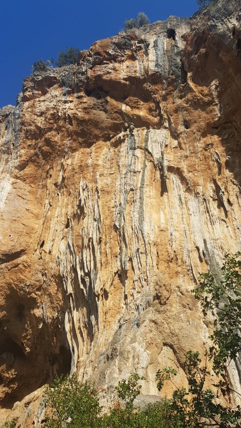 Enjoyable climbing so far in Athens, and very conveniently shady, but still a bit short of “World Class”, and we were keen to find something more spectacular for Jake. Mavrosouvala fits the bill, with tufa pipes every bit as impressive as the best of Kalymnos and hidden in dense forest just north of the Athens sprawl.