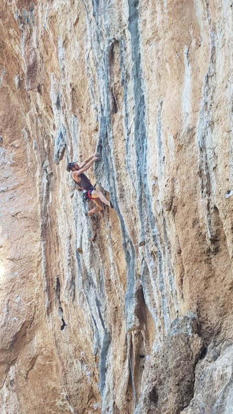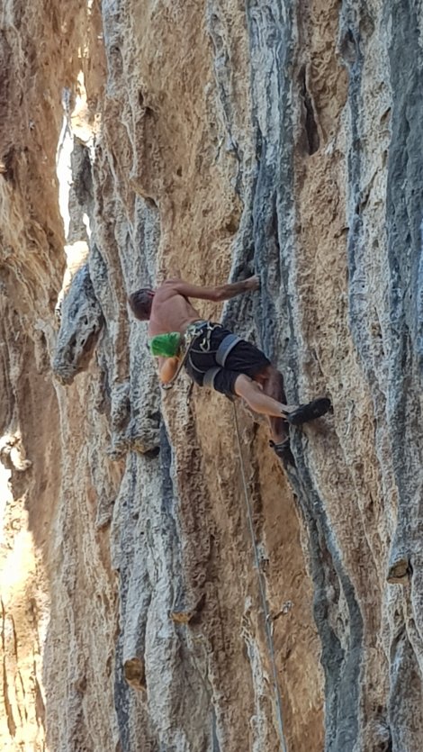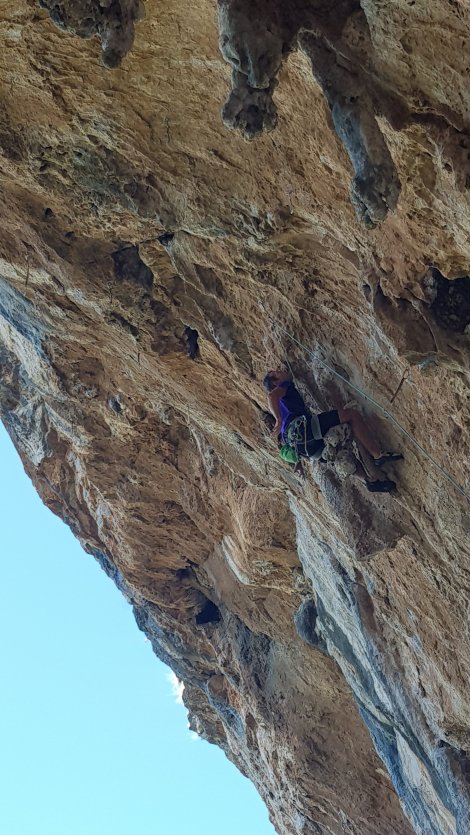 Jake exhausted the remainder of his energy on a near-miss on Black Mamba, another 7b with a blind leap for a much-chalked break with only one decent hold (some you win…) by which time we’d run out of shade, routes and energy!