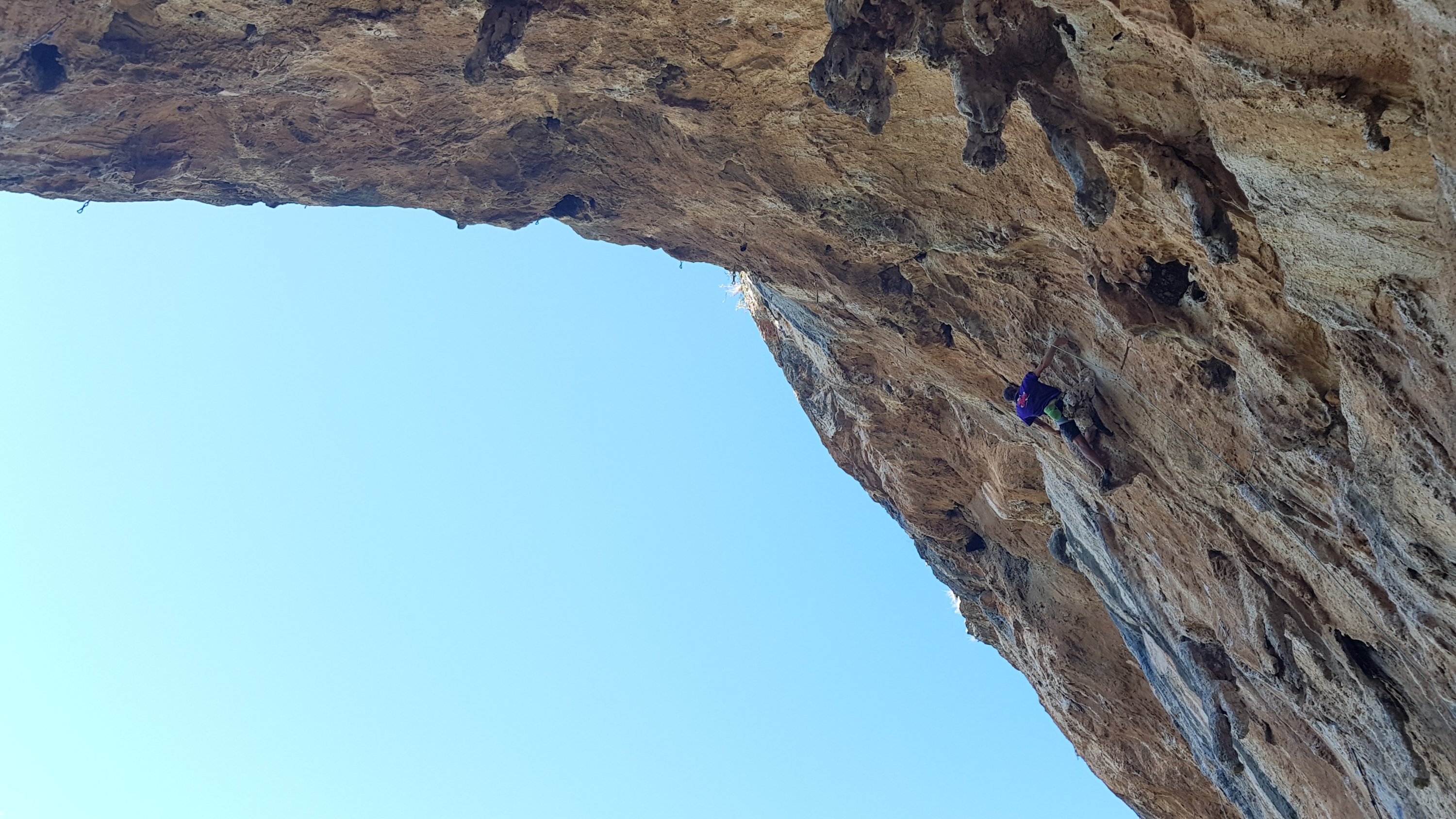 Enjoyable climbing so far in Athens, and very conveniently shady, but still a bit short of “World Class”, and we were keen to find something more spectacular for Jake. Mavrosouvala fits the bill, with tufa pipes every bit as impressive as the best of Kalymnos and hidden in dense forest just north of the Athens sprawl.