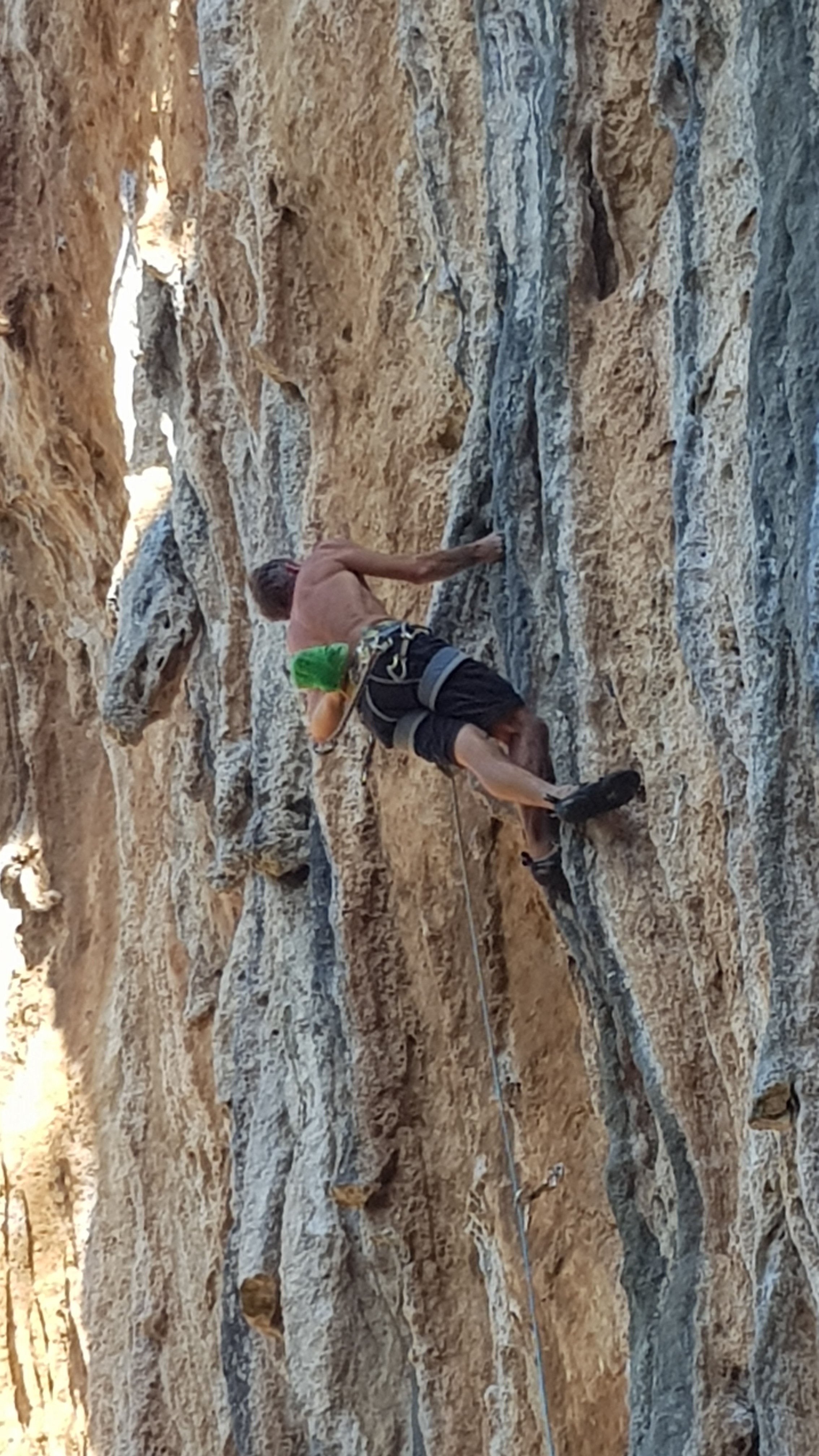where a major tufa blob can be straddled to get a bit of a rest before tackling the final crux pop for an undercling.