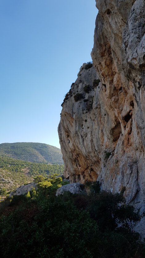 This sits on a subsidiary lump on the edge of Mt Parnitha, just above a busy road and behind a large villa (who’s spiky rear fence provides a bit of extra spice in the event of a fall!) Aesthetically disappointing but just the ticket for a half-day airport crag before taking Jake back for his flight home.