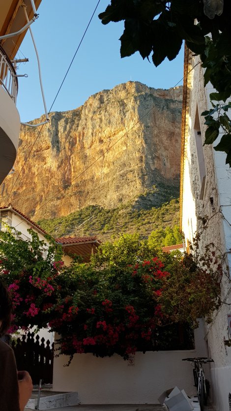 Great views of Leonidio and the massive Red Wall – Kokkinovrachos which dominates the skyline (that’ll have to wait for a cloudier day!)
