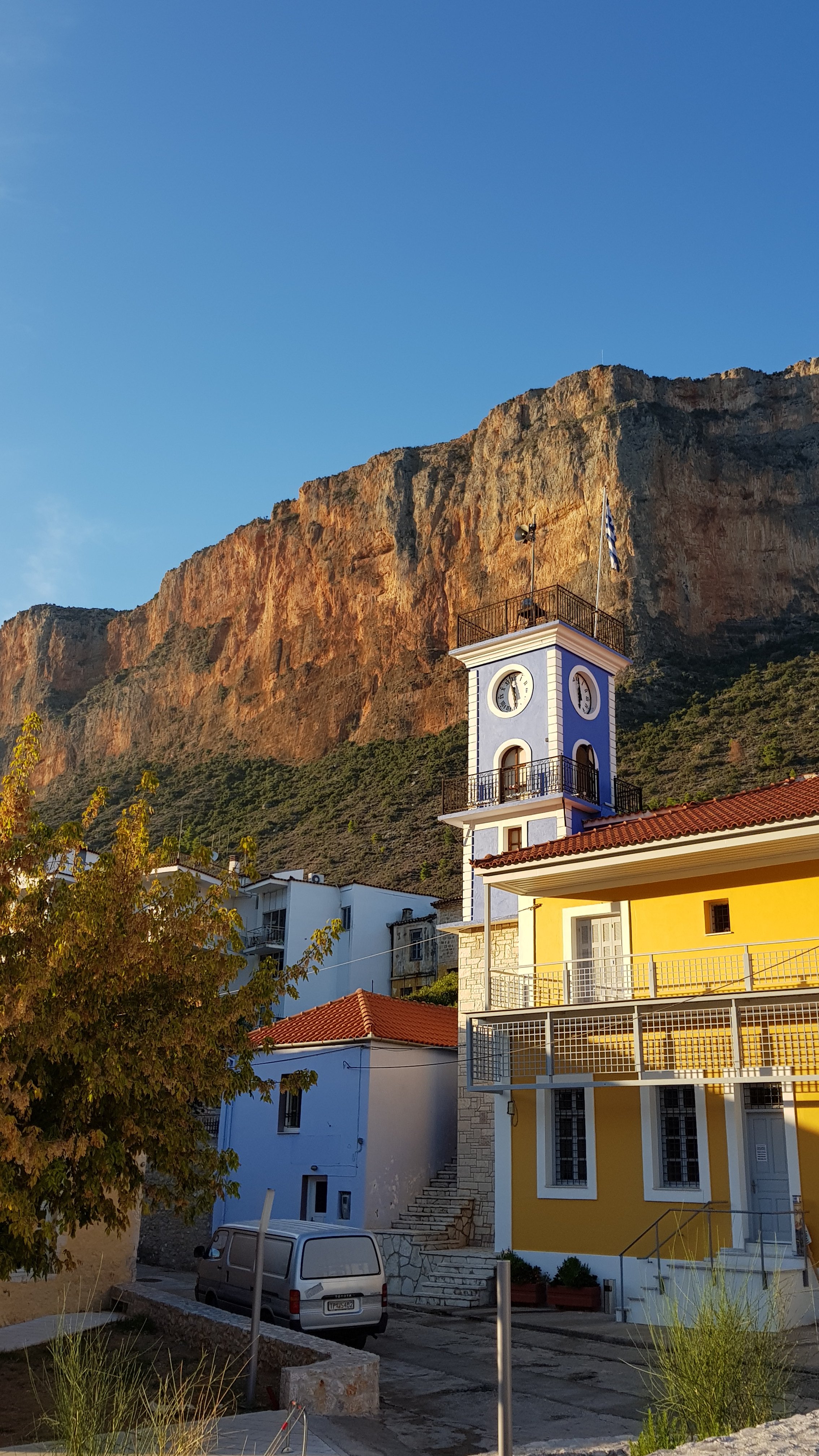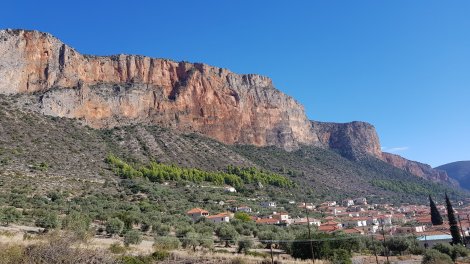 Great views of Leonidio and the massive Red Wall – Kokkinovrachos which dominates the skyline (that’ll have to wait for a cloudier day!)