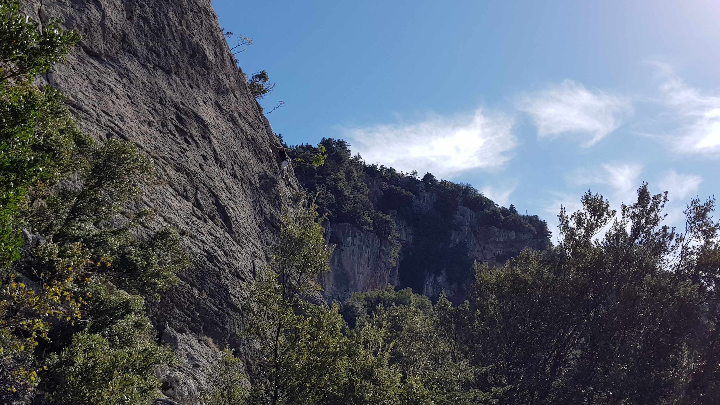 This mini sector barely merits a mention in the Greek selected guide, and in fairness it only has four routes, so we were half-expecting a scruffy filler-in. However, it’s a really quiet impressive spot with routes around 35m from 5+ to 6a+ on heavily pocketed limestone vaguely reminiscent of the Frankenjura (perhaps the reason for the naming by the German equippers)