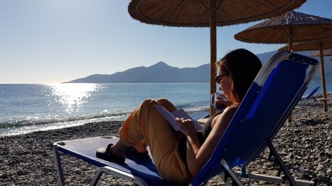 What better way to start your day than breakfast on the beach, 30m from the van? Time to check out the options for the day’s cragging in the guidebook over a coffee.