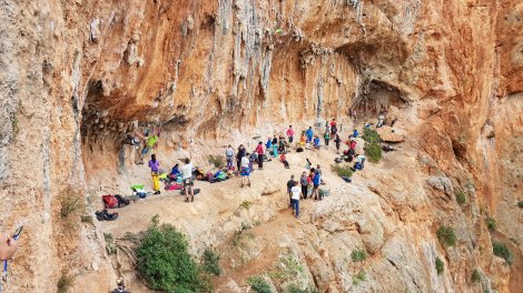 On arriving back at the campsite in Leonidio after our Kyparissi excursion we’d spotted a fellow GB plated campervan and were surprised to find that our friends Andy and Wendy had turned up out of the blue – climbing really is a small world! For our final day in Leonidio we decided to team up and head back to Mars; one of the standout crags of the trip.