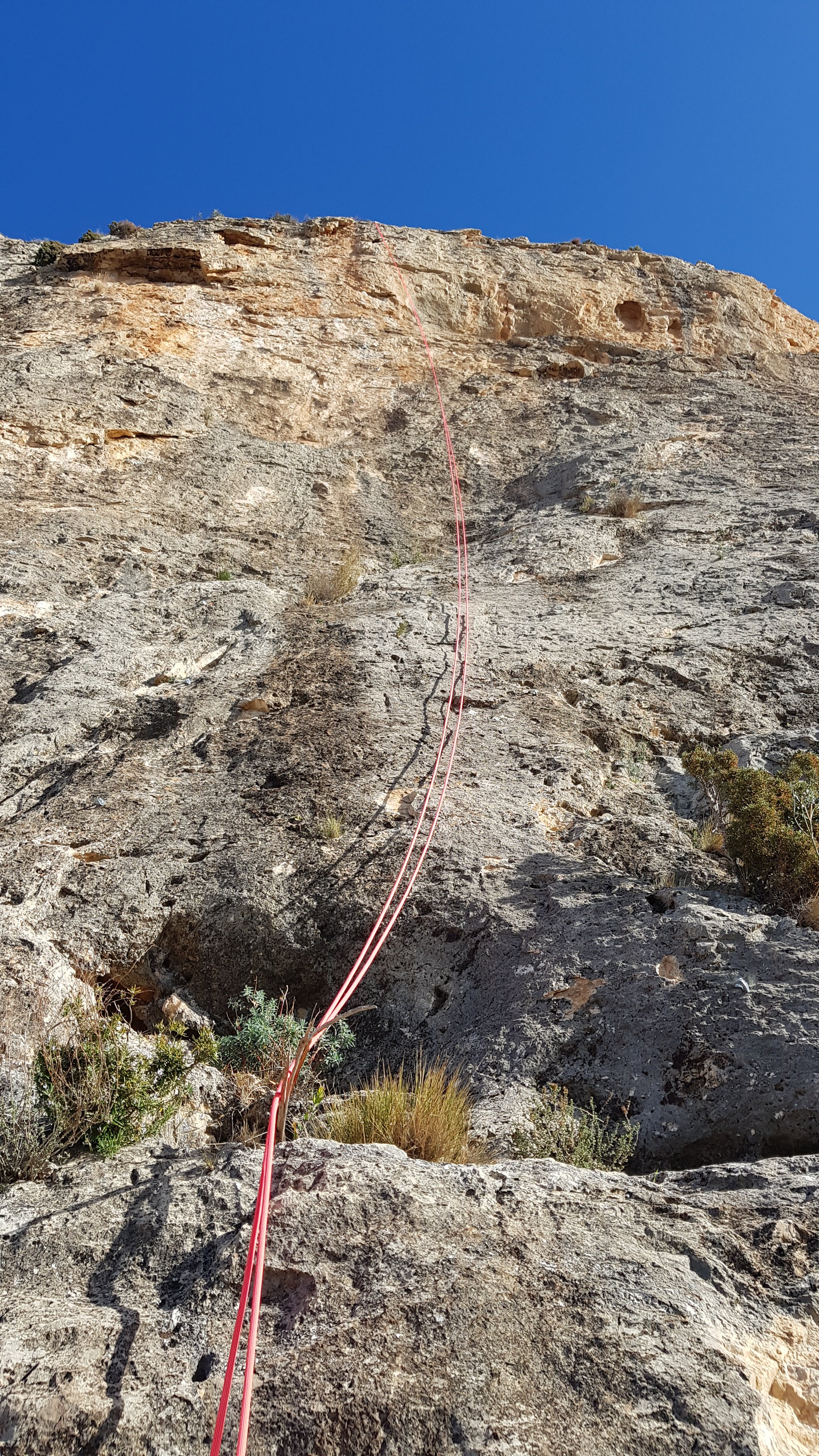 A 20m 6b+ (tougher still) with another 15m 7a+ extension up steeper yellow rock which is really challenging. Heart-breaking because after a couple of sections which seemed worthy of the grade in themselves I finally ground to a halt a few inches short of clipping the penultimate bolt before plummeting 😦