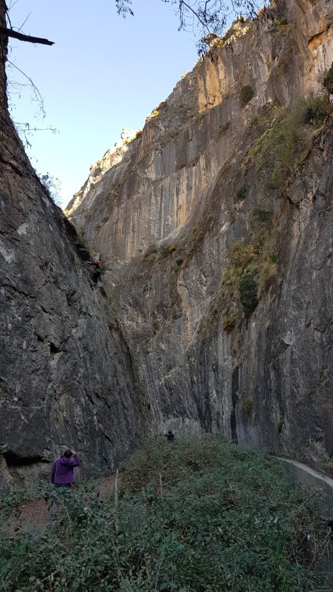 It’s an impressive spot, very much a tourist and walking destination as well as major crag, with hundreds of single and multi pitch routes on either side of a huge gorge. Much of the climbing is on the shady side, so we headed for the sunny sector Eras.