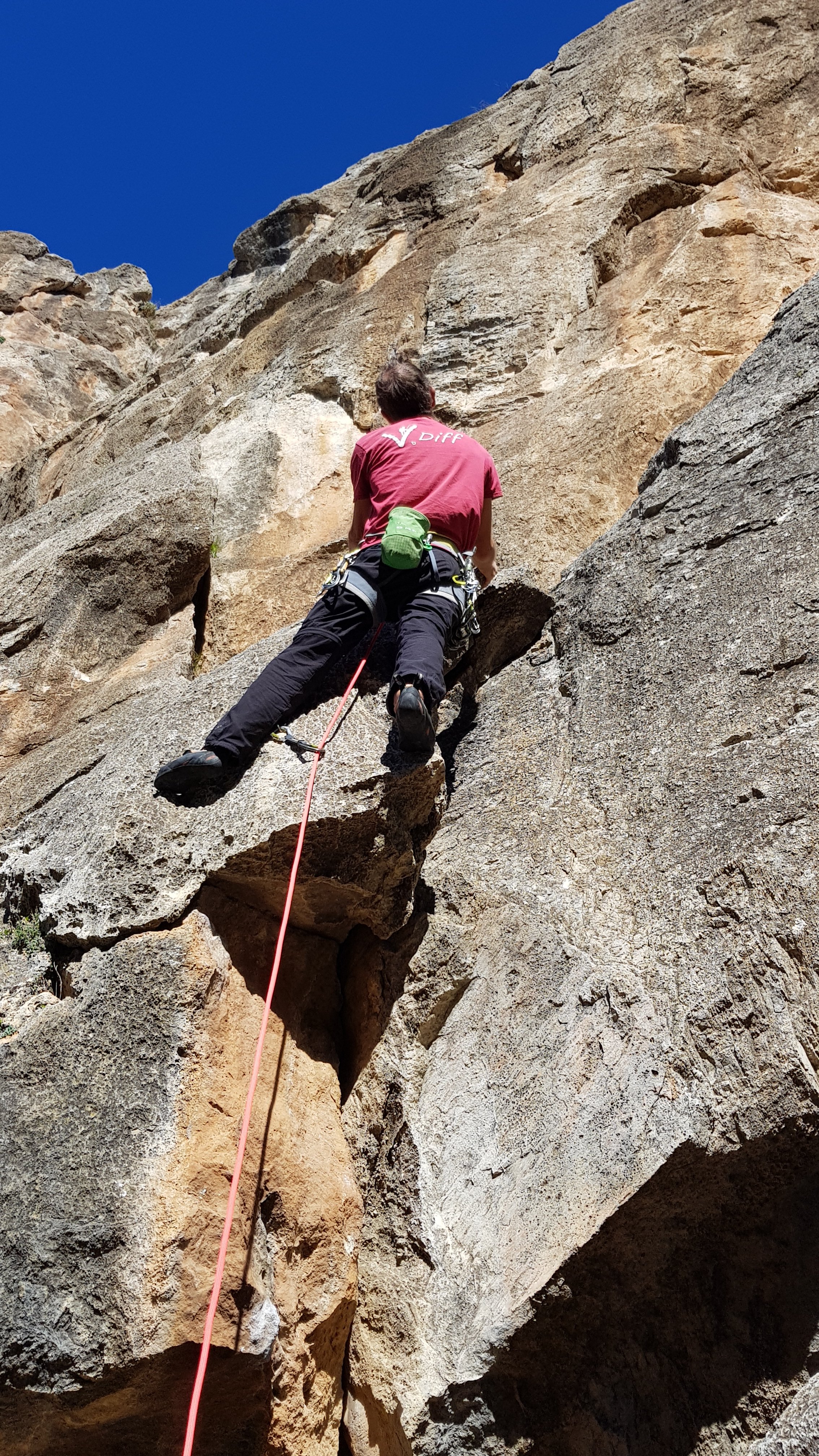 Great climbing though, feeling more like Alpine granite than Spanish limestone, with jamming and laybacks being the name of the game.