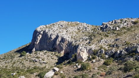 This impressive crag occupies a commanding spot above the coast, just east of Malaga. There’s a south east facing crag above a villa development, but we picked the west-facing crag to catch the afternoon sun and because it looked to have a better bunch of routes.