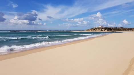 We took the scenic coastal road north towards Lisbon, tracing a route parallel to the edge of the Atlantic through the natural park that protects this wild and wooded landscape – so many cork trees! We had a leisurely lunch stop just before Villanova de Millfontes and a quick stroll on the deserted beach.