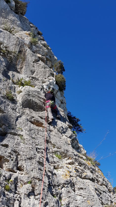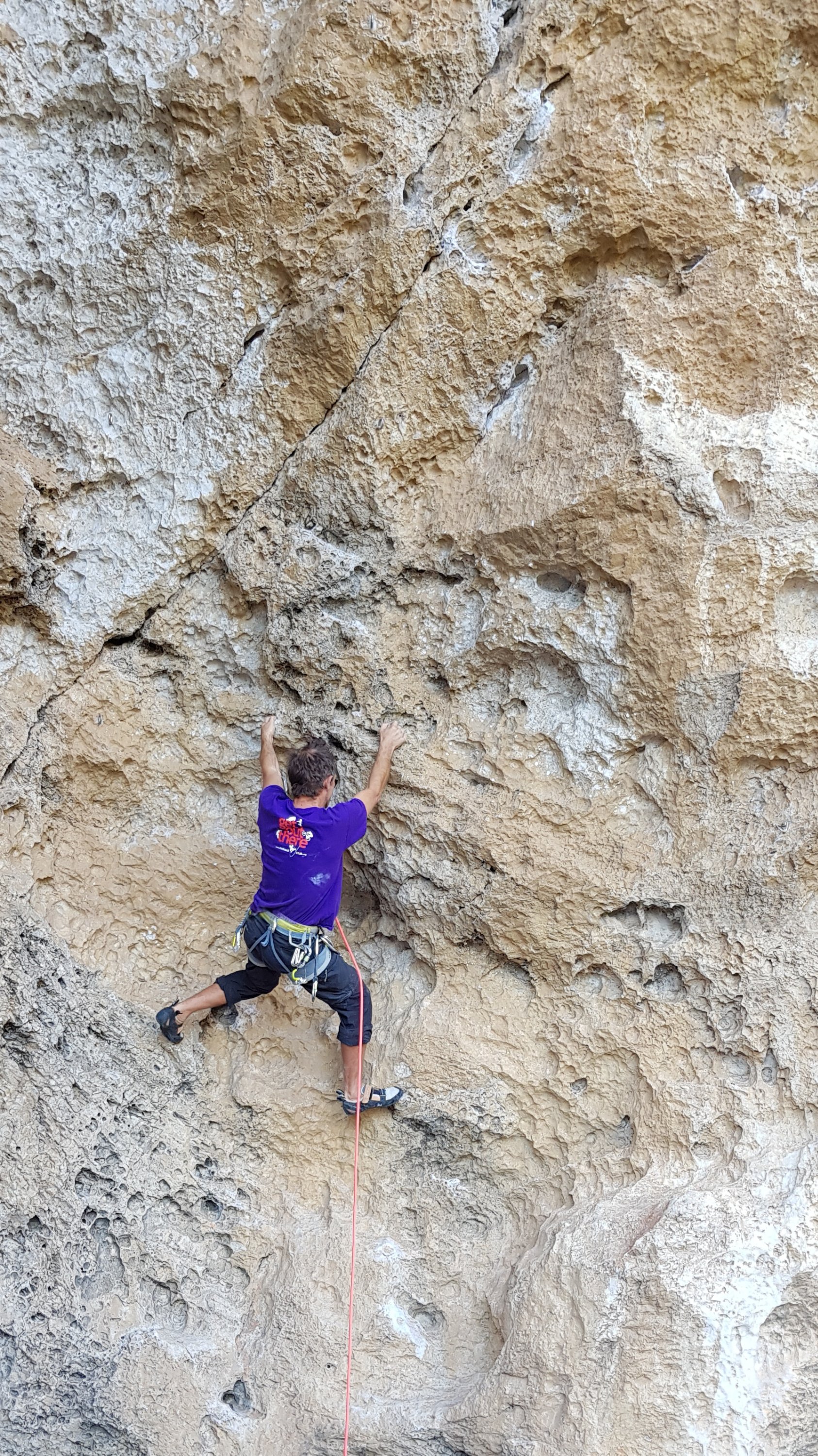 … and to check out this sector about 500m further East from our visit a few days ago. It’s an unusual spot dominated by a couple of tufa-filled caves flanked by grey featured walls giving quality climbing from 5c to 7c in the space of a hundred metres.