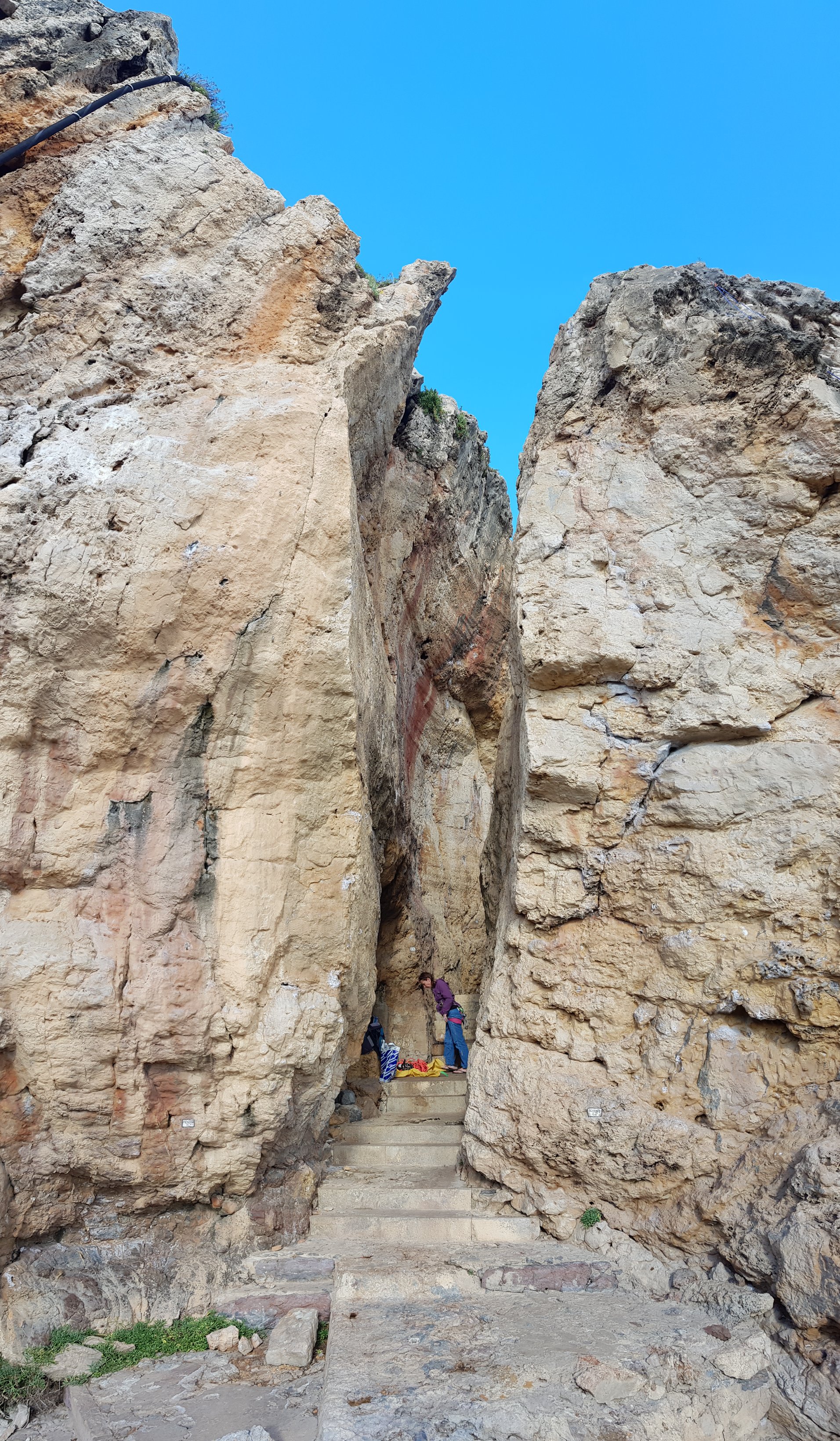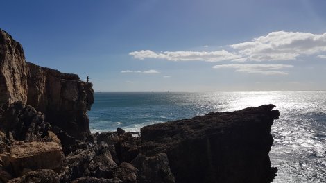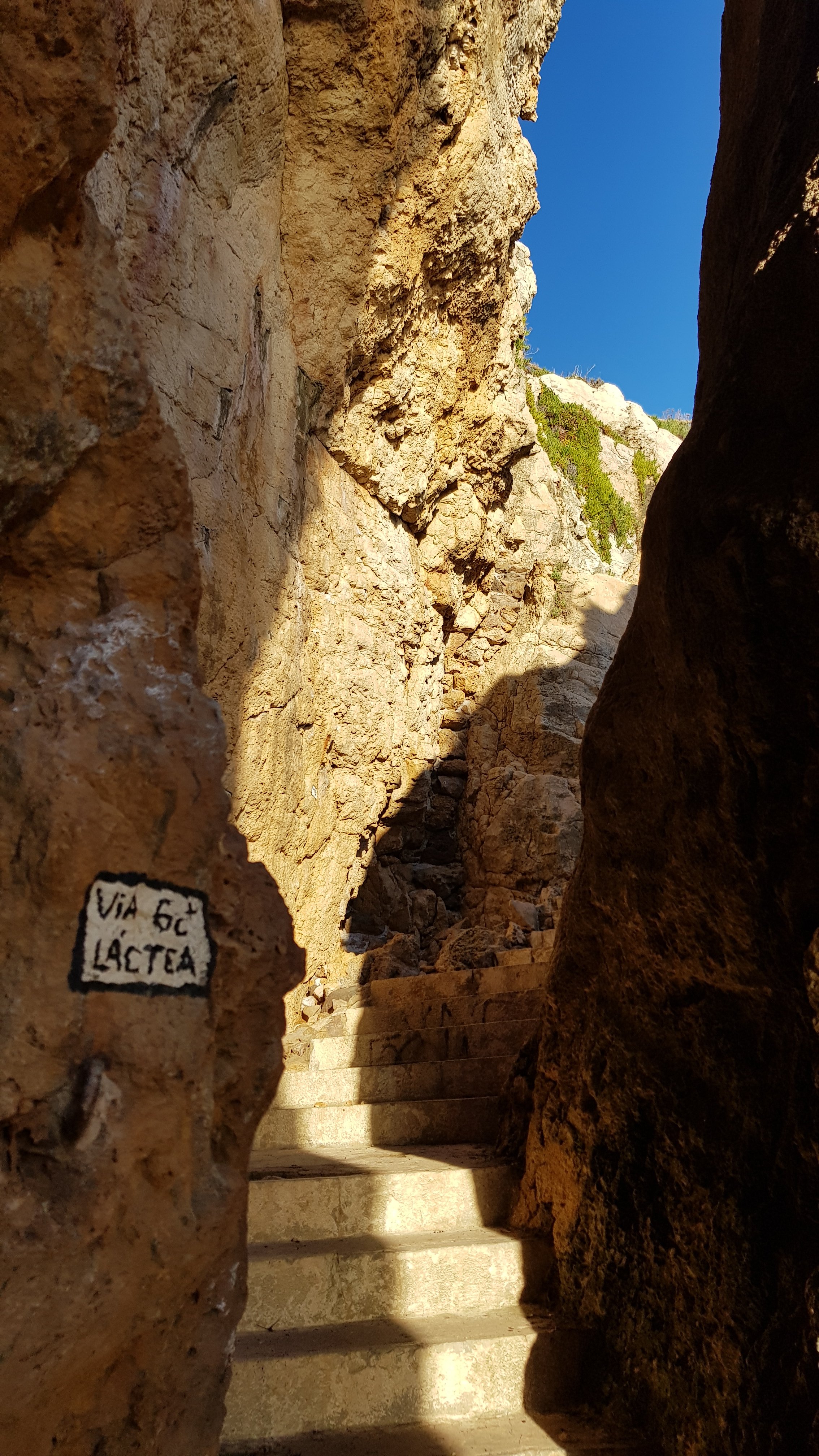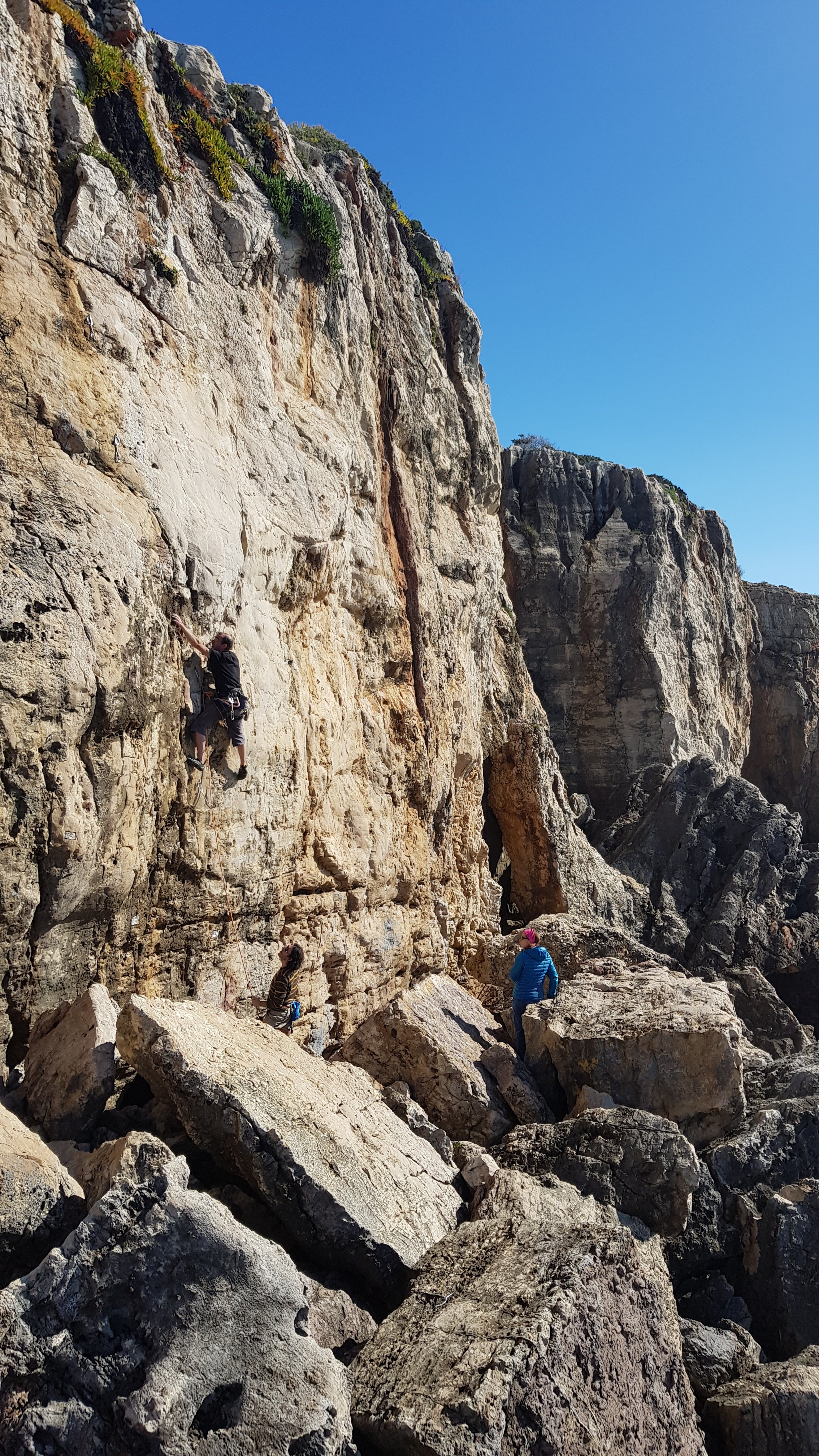 Cascais, a seaside town just north of Lisbon, is where sports climbing started in Portugal about 50 years ago, and it couldn’t be much more convenient! The climbing is approached down a stone staircase (passing under a helpful sign so you know you’re in the right place)