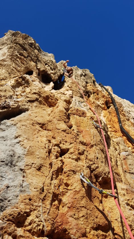We finished on Via Latea, halfway back up the steps – easy for 6C+ (or even 7a in the Jingo Wobbly guide).