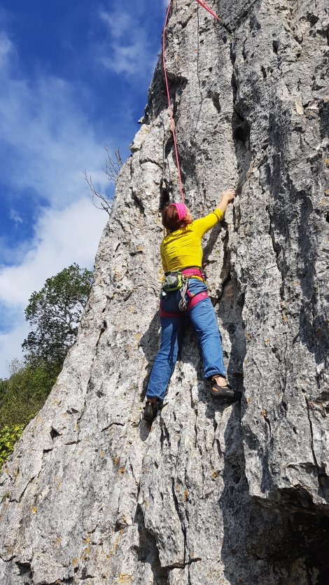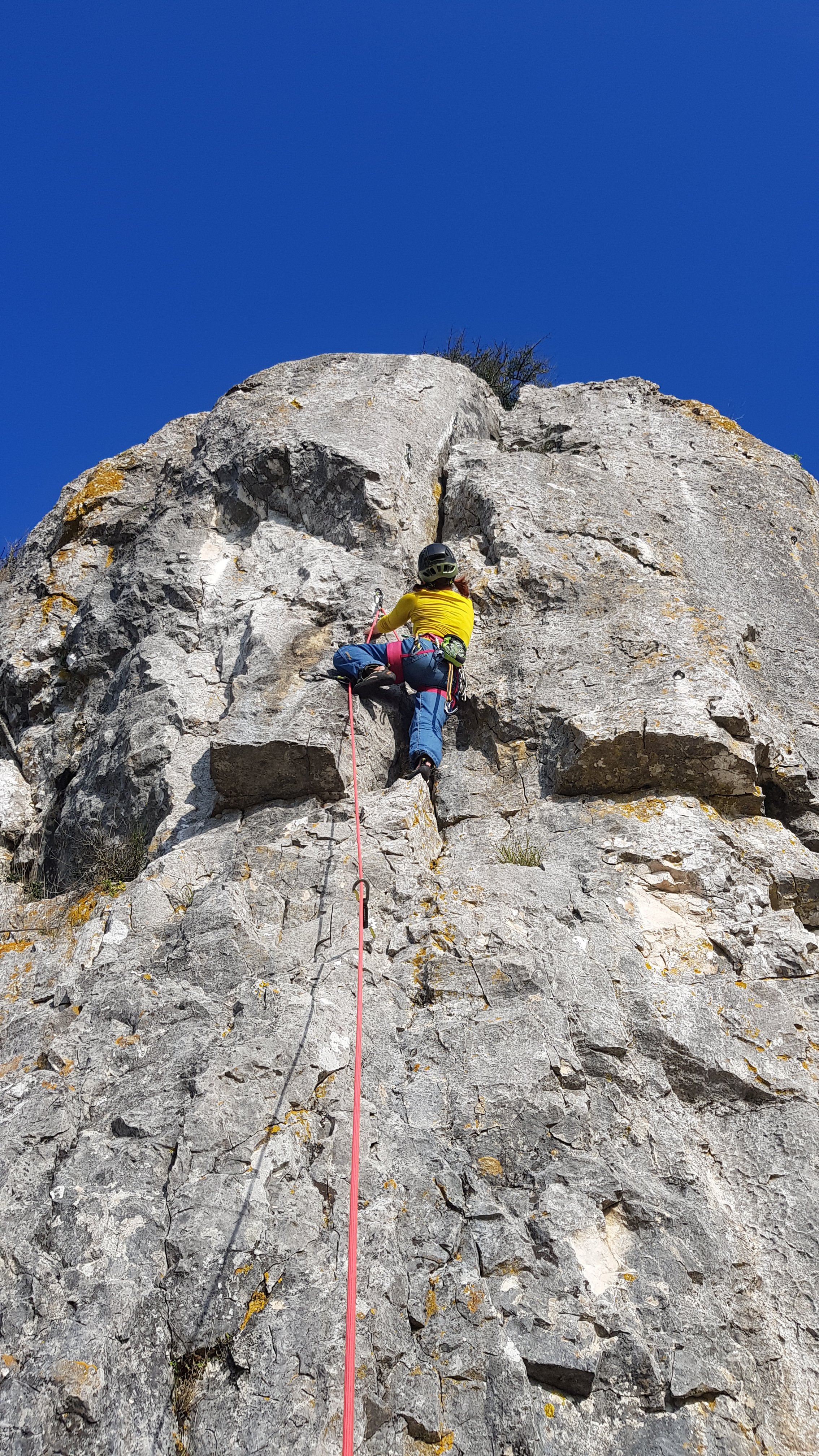 which would have been completely at home in Dovedale (apart from the bolts) and then scratched our heads for options – the handy route grade graph showed a dozen 6s but these were pretty much all in the shade… Time for crag 2!