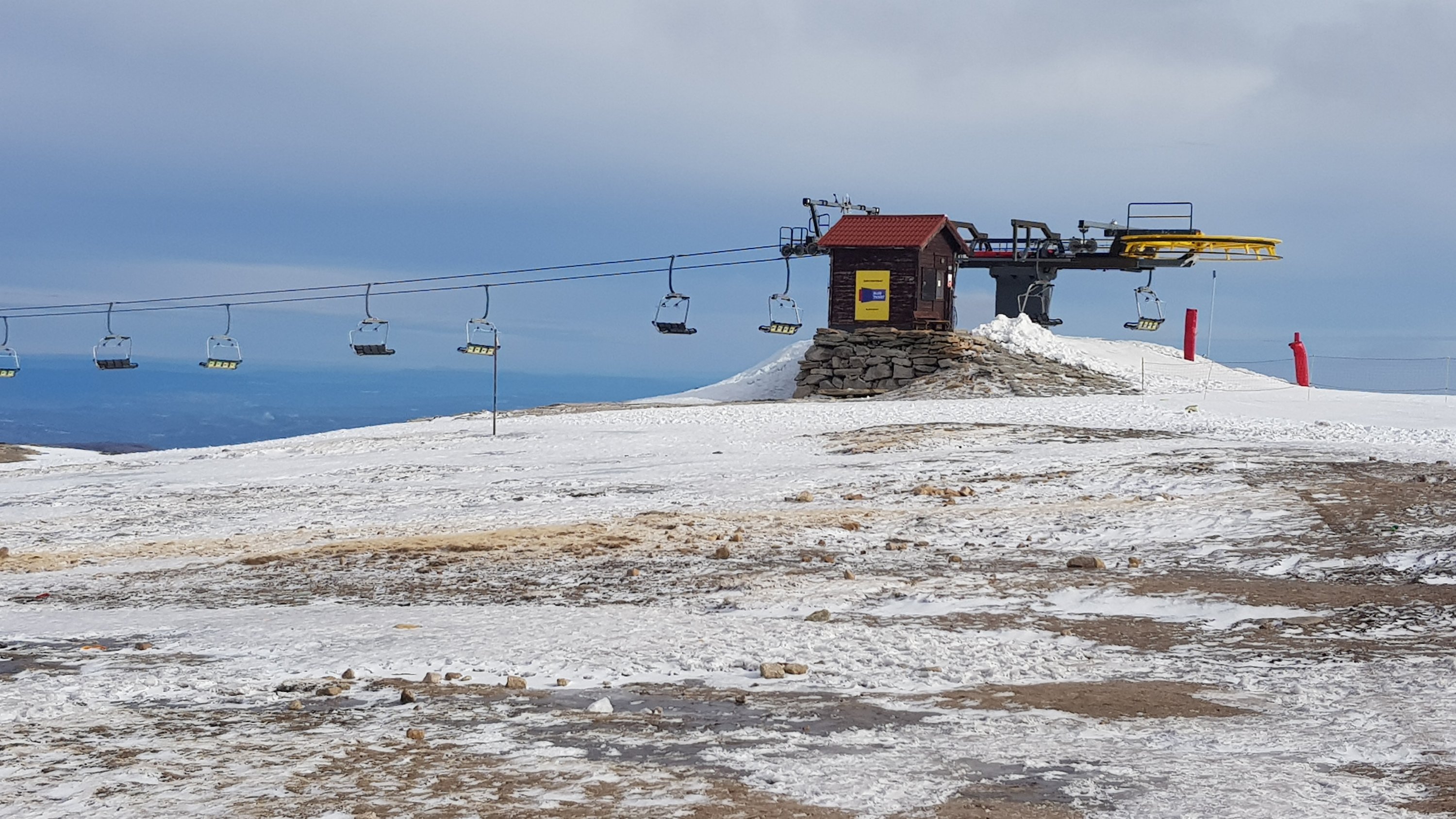 Great views from our eerie in the morning, but the temperature gauge was still stubbornly stuck on zero and our plan to climb on the Placa de Francelha (accessed by walking down from the summit to around 1,750m) was looking optimistic in the extreme – perhaps cragging in a ski resort in February wasn’t such a great idea…