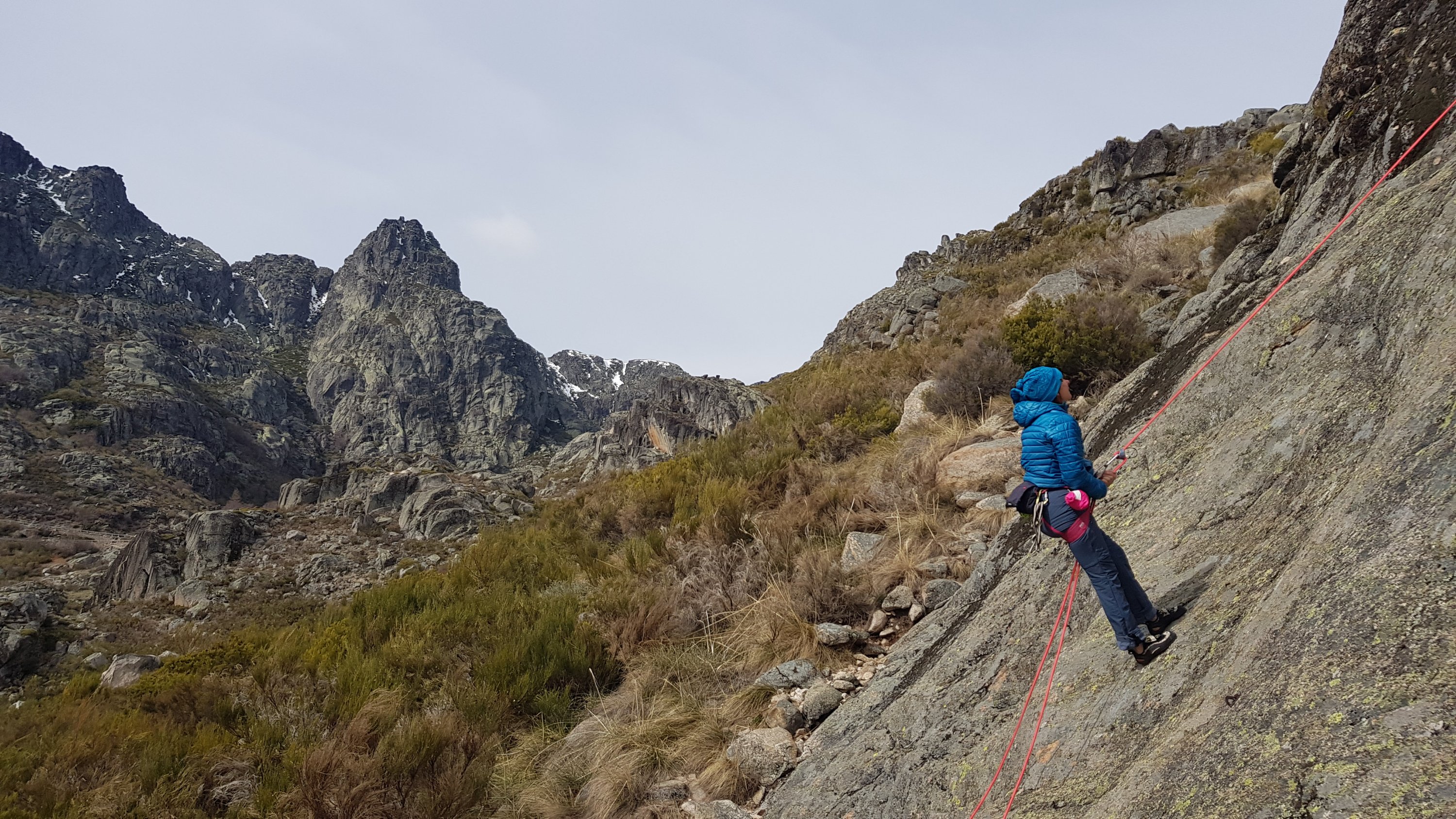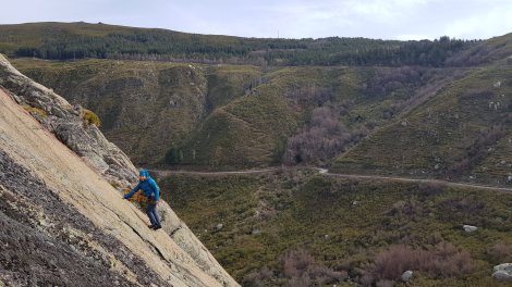 … and headed into the textbook glaciated Zezere valley. The orange * ice warning snowflake had just stopped flashing and we were basking in a heady 4C, but more importantly the wind had dropped and the sun was out, so we went to recce the “low lying” valley crag of Parade dos Fantasmas, at “only” 1,450m (still the height of The Ben!)