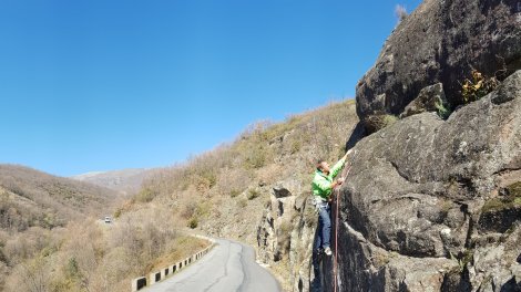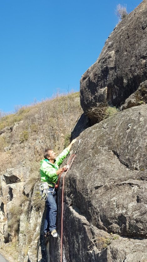 We ticked four routes on the Huerta del Abjelo Jose buttress (the name, which means Grandfather Jose’s Orchard, is longer than some of the routes!), all around V to 6a+ which of course being slabby granite meant they felt like bolted grit HVS or E1. If nothing else we provided entertainment for passing locals!