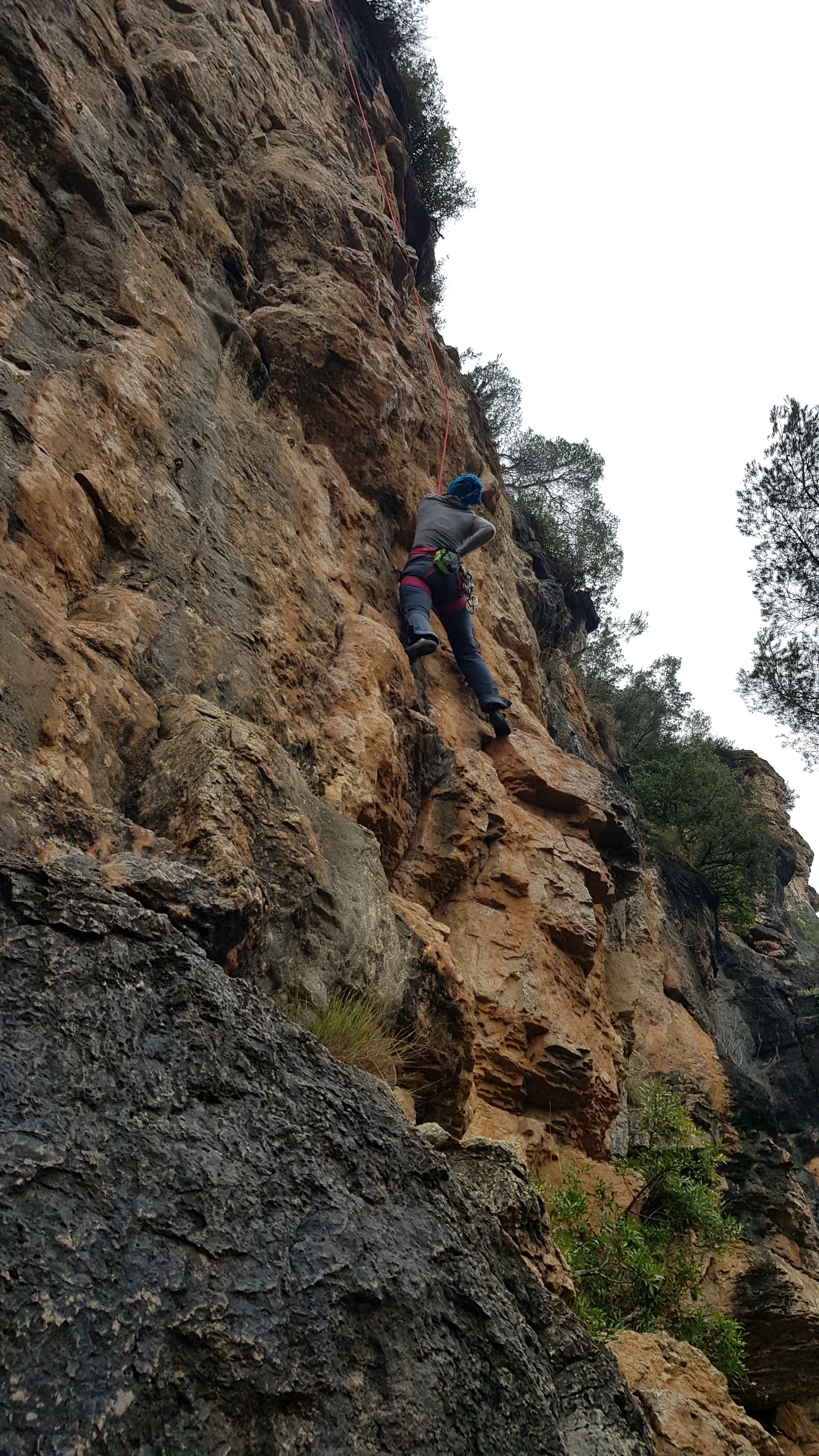 With high level crags covered in 6″ of fresh snow, we settled on Gelida as a 4* crag nearer the coast.