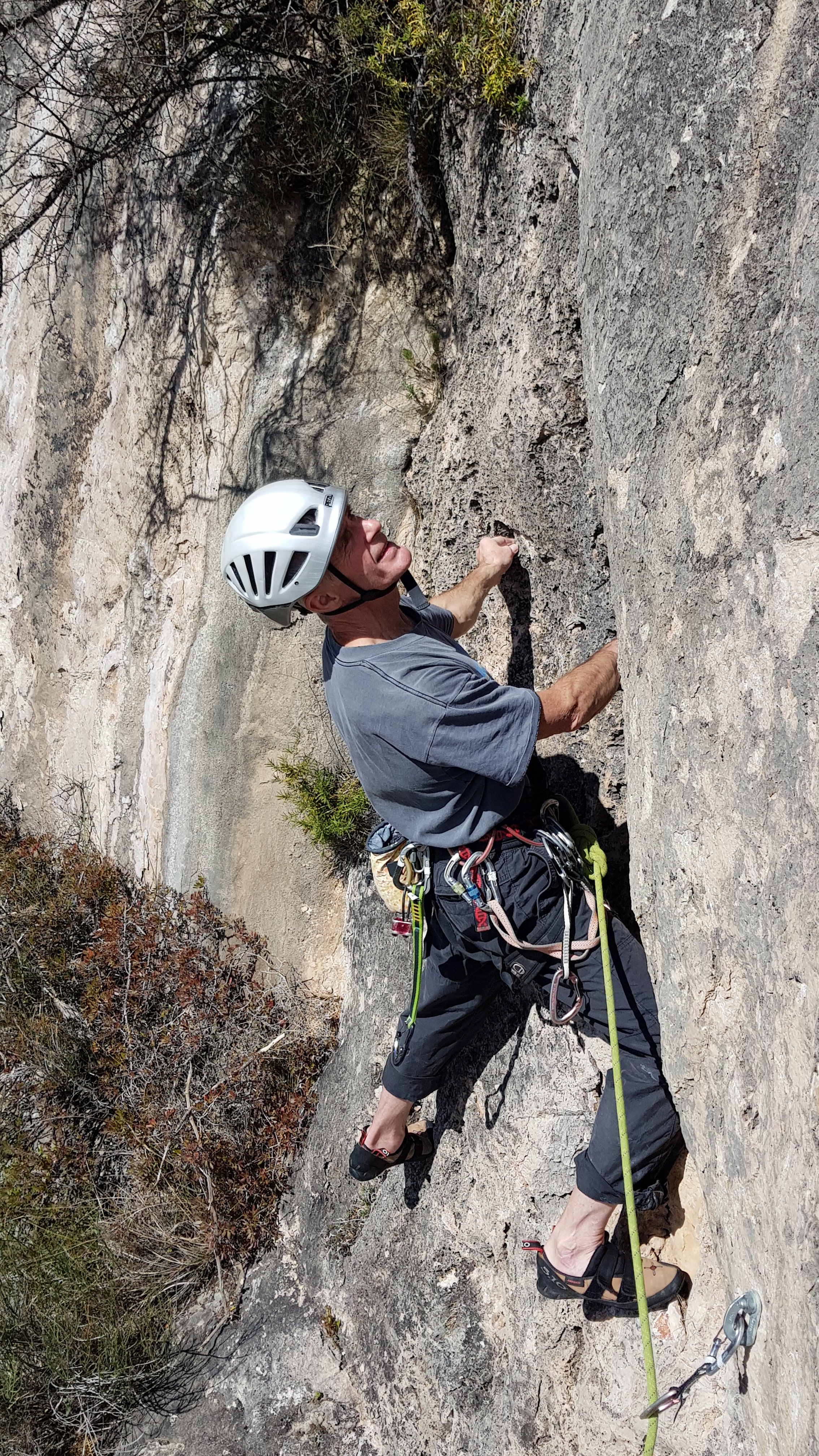 An unsettled forecast led to much deliberation over guidebooks, Google Maps and various weather apps. Throwing all the data into the melting pot we ended up with a Plan A to head out of the mountains towards the coast to this crag near La Bisbal de Penedes, deep in Catalunya wine territory. The clincher was the name of the sector – Placa del Sol.