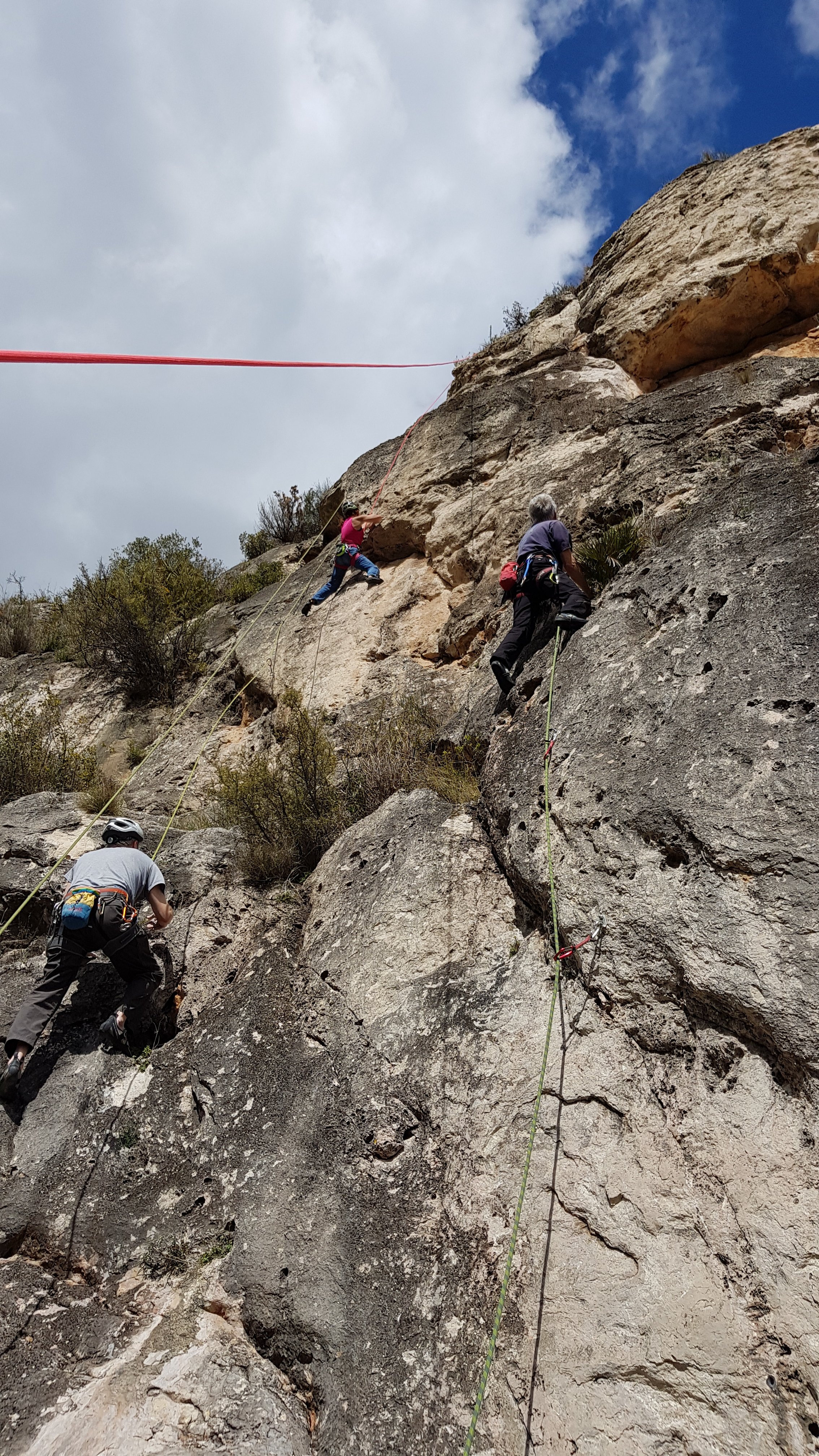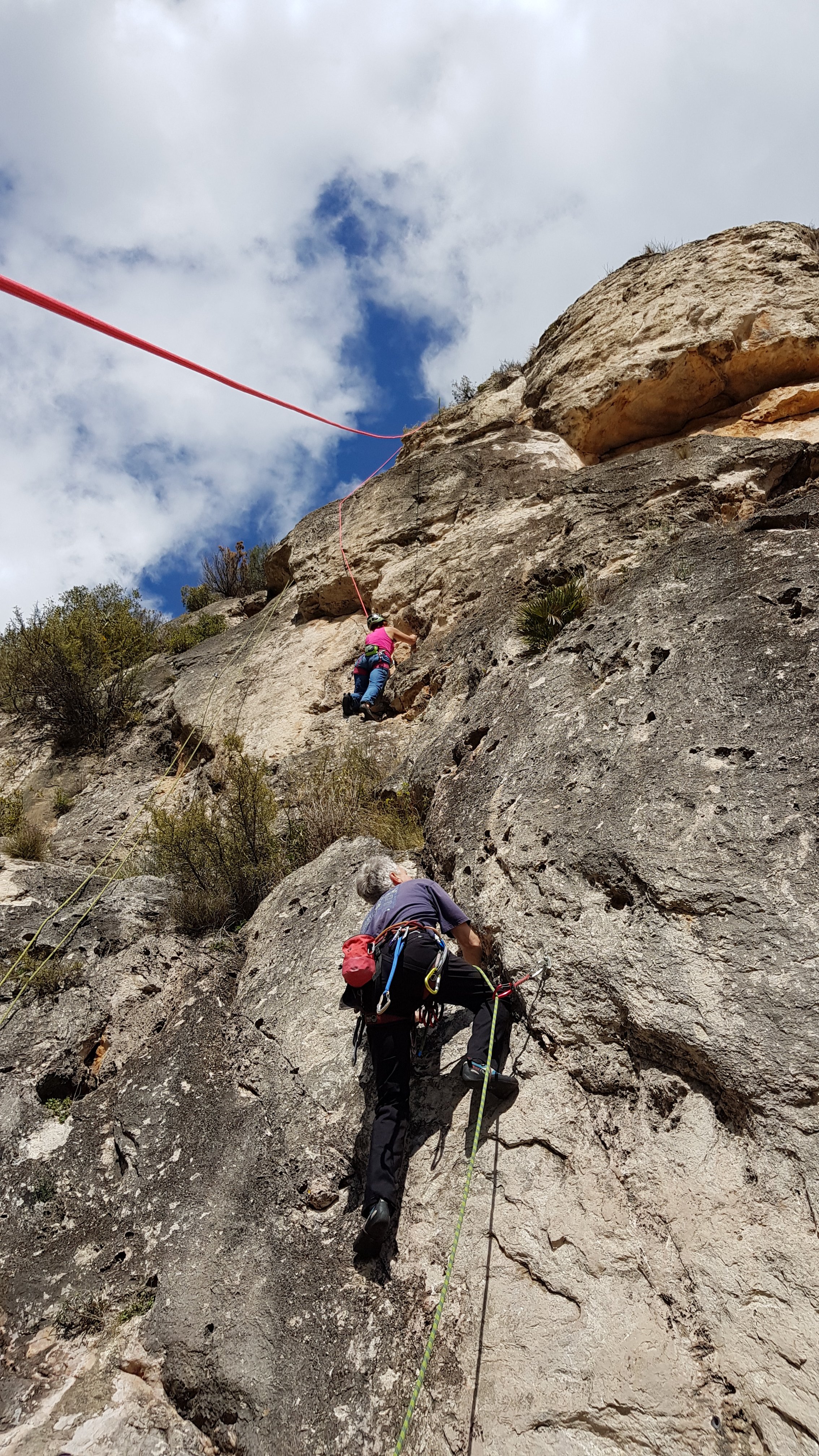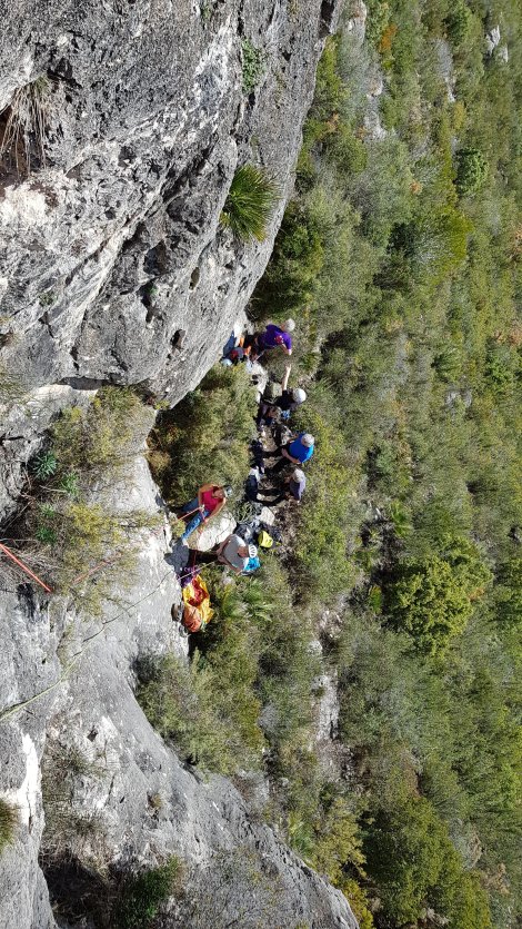 We certainly surprised the bunch of half a dozen locals who were enjoying the peace and tranquility of this out of the way spot – I can’t imagine it often sees a dozen Brits rocking up. Space at the base of the crag was at a premium.