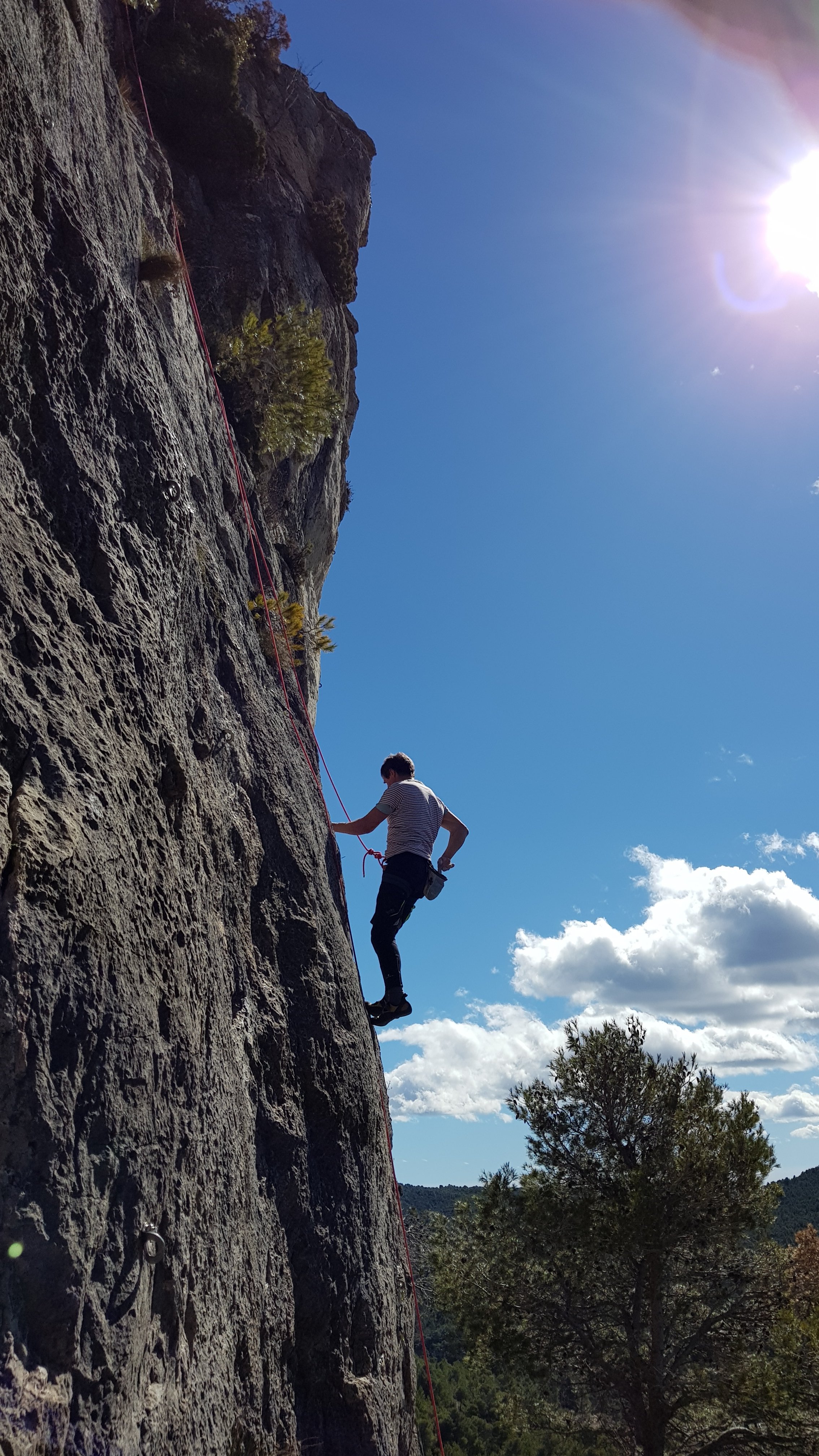 Day 4 of SunRock dawned bright but breezy, and the team split down the middle seeking the best combination of sun and shelter – half heading to Siurana and our lot to Arboli.