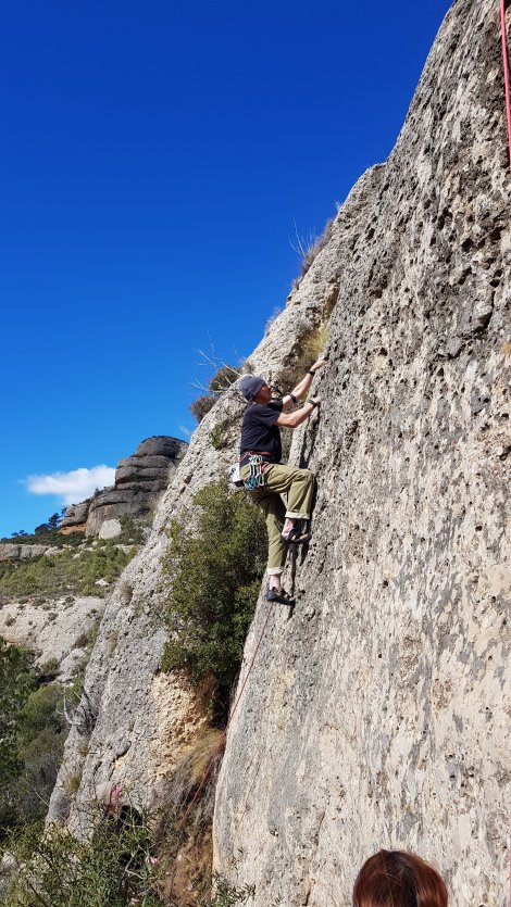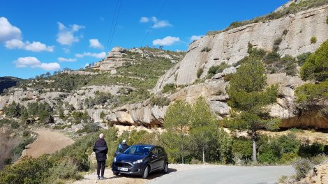 Another bright day and blue skies, but a bitterly cold wind (luck I advertised the meet as Sun Rock rather than Hot Rock!) A couple of options emerged with a big team heading for La Mussara and others checking out Villanova de Prades and Siurana. We banked on the lower altitude of Margalef to provide decent conditions, and went to the Can Llepafils sector.
