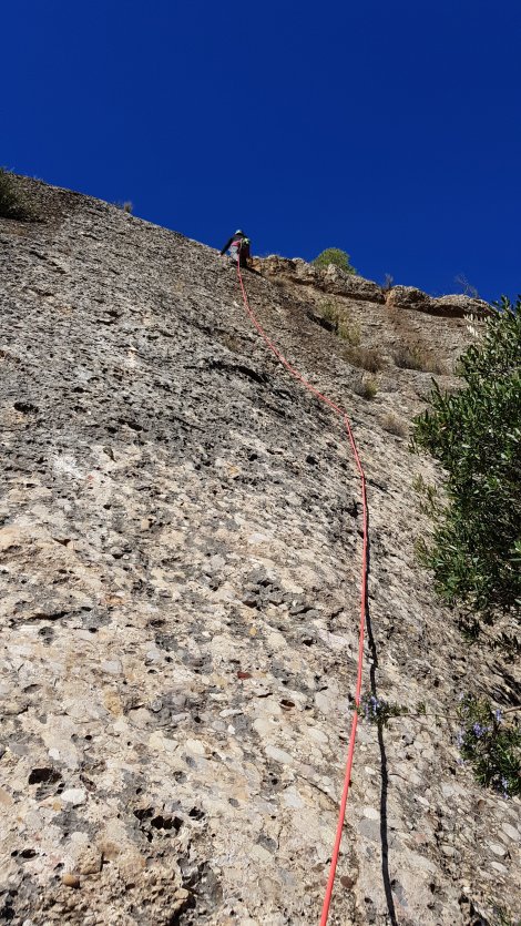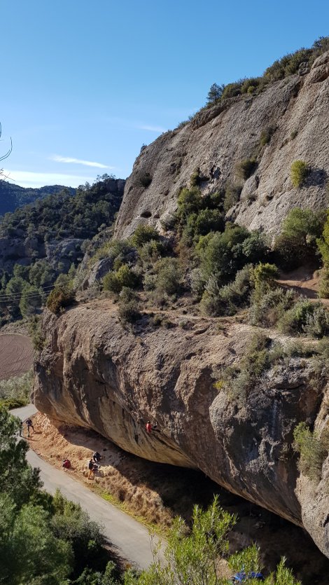 This is in the main valley at Margalef, but on a tier just above the roadside crags (the upper sector in the photo above.