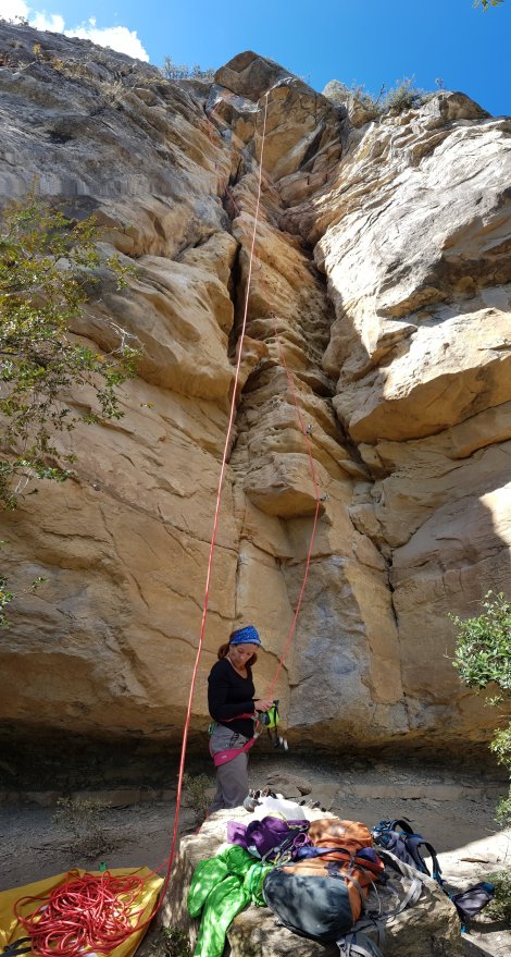 (we hadn’t baggsied a spot, honest, there was a race planned for the weekend)… walk back down the road a hundred meters or so to the first hairpin, and carry on along a good path to the first routes in only 5 minutes (an ambiguous map and Catalan description had us rapping down a steep approach gully on our first visit – don’t bother!)