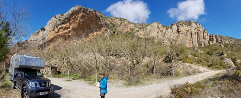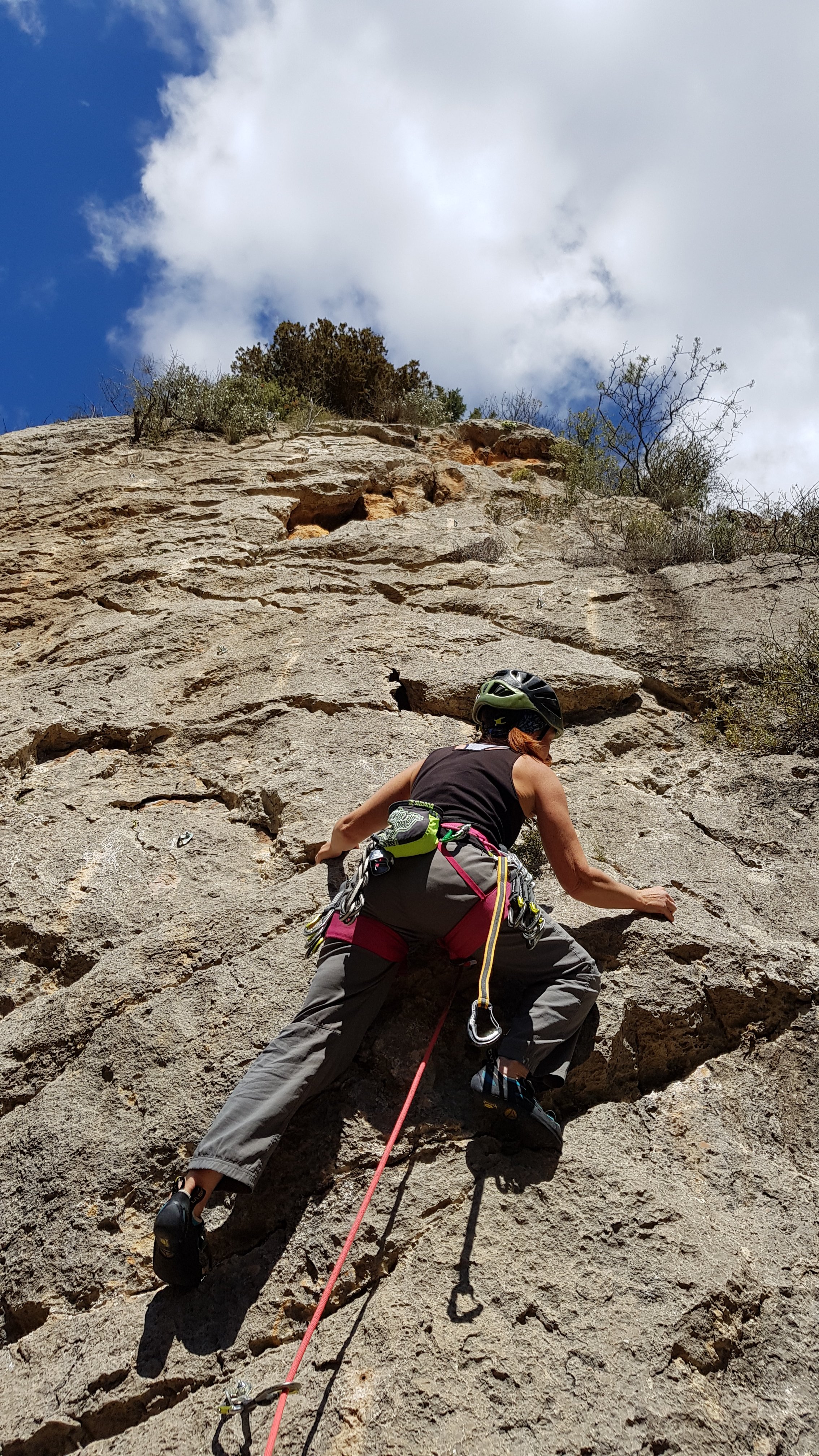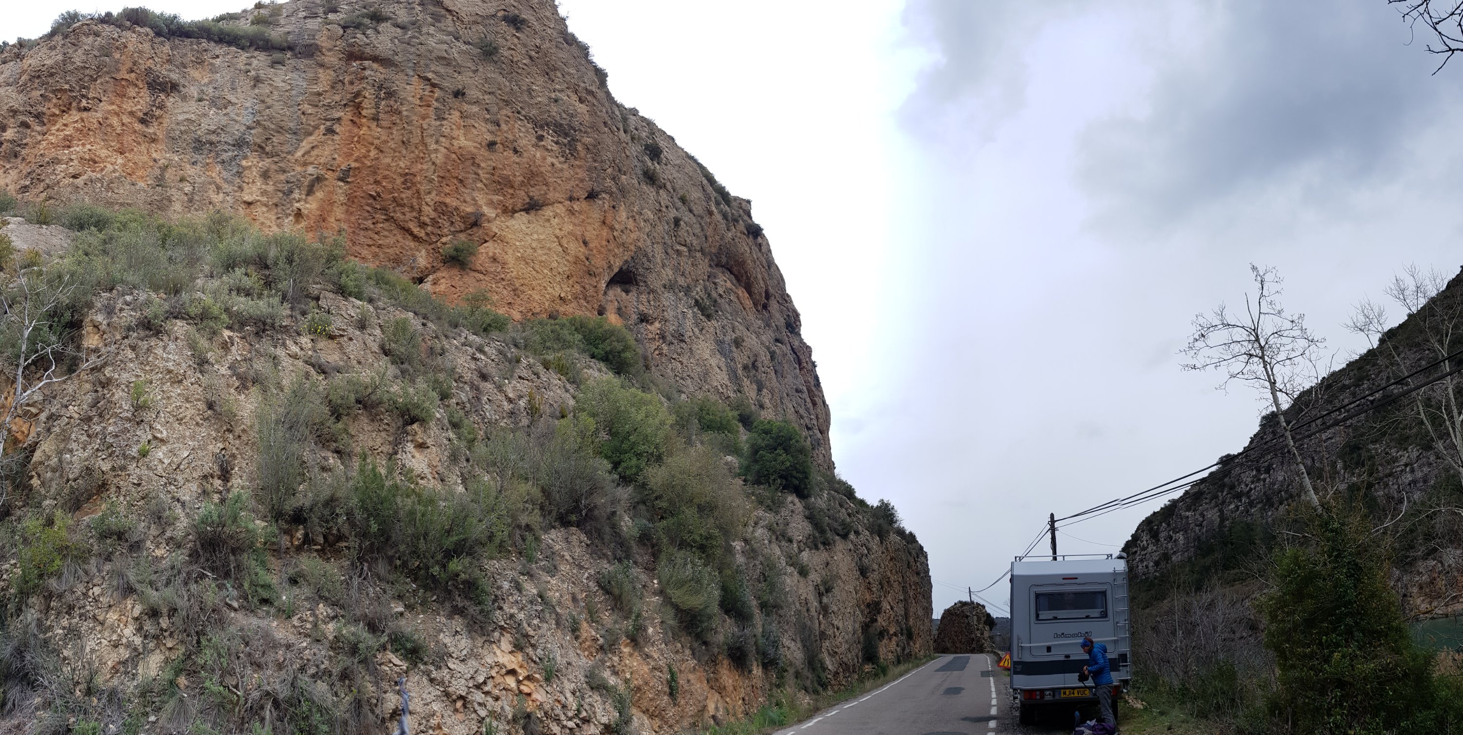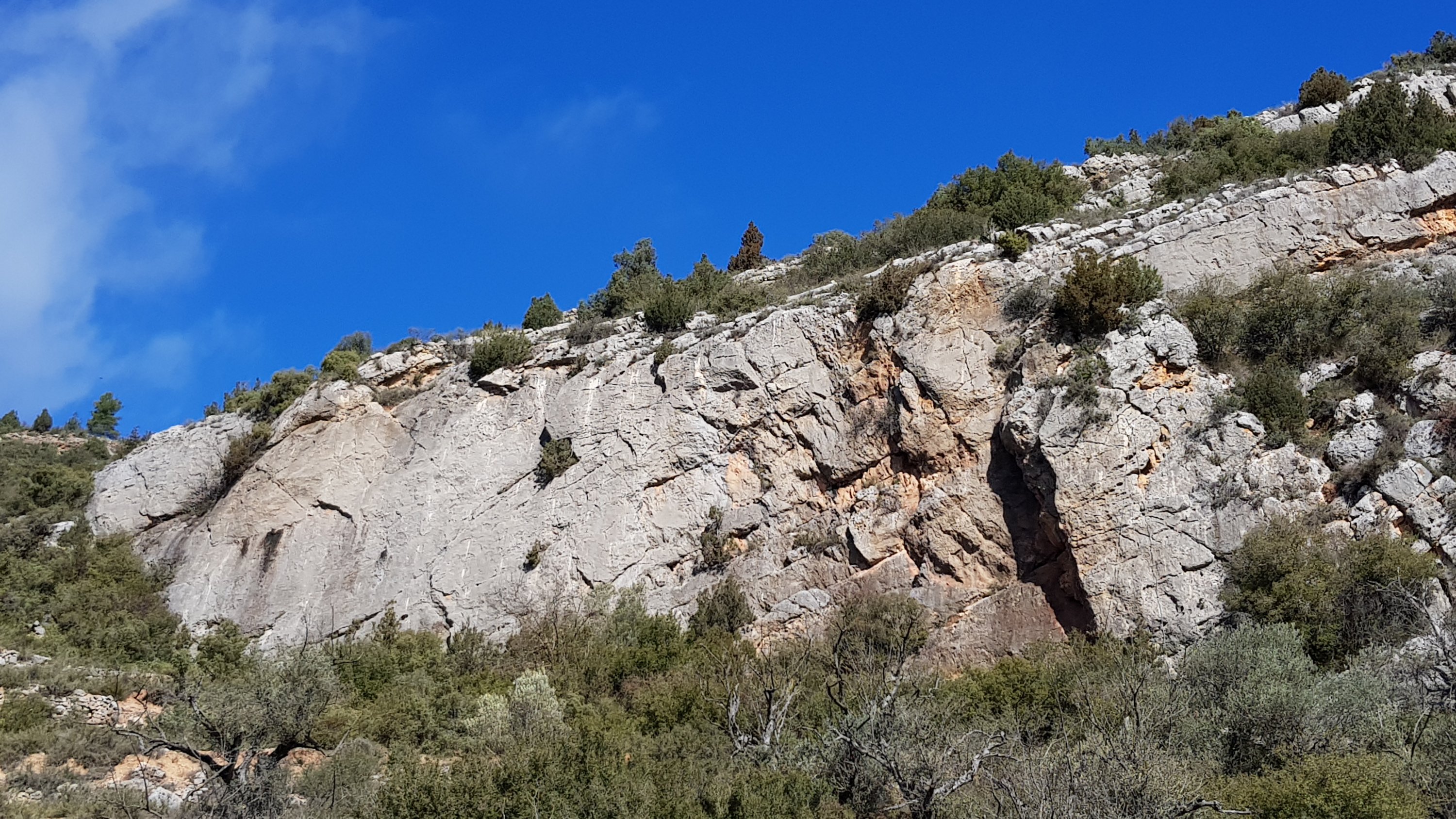 After a week in the area around Barcelona we felt like getting a bit further away from the metropolis. The Prades and the Pyrenees would both fit the bill, but an extended cold snap meant that going high would be chilly. We settled instead for the climbing around Lleida and moved base to Sant Llorenc de Montgai (a bunch of south facing sheltered crags set around a pretty reservoir at about 350m).