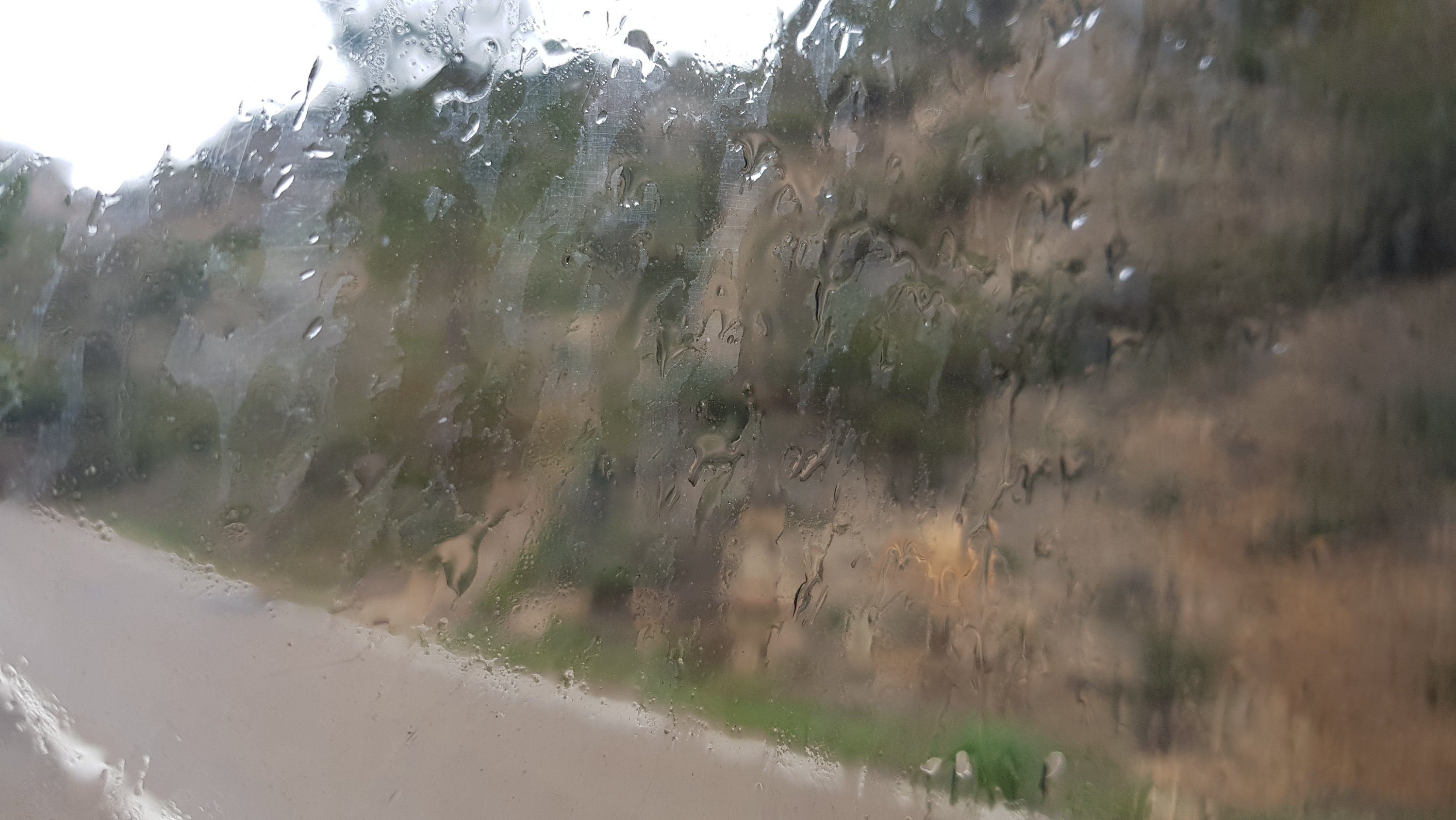 and walked to the crag it was almost 3 o’clock – just as the rain arrived spot on the forecast. 😦 Luckily it was only a 2 minute approach, and we were soon in a warm dry van looking out of the back window at the rain and the less fortunate climbers rapping off the multi-pitch routes opposite. Rain stops play!