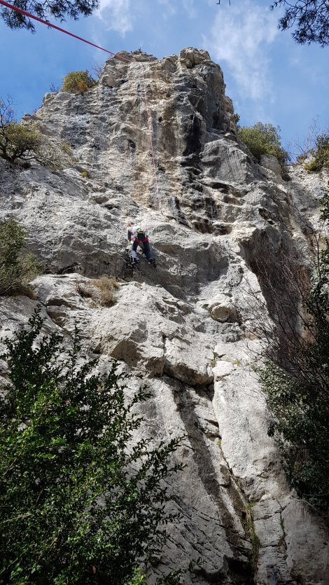 Sector Rock de L’Alou is the lowest, at just over 1,000m, and a complete disappointment. A very shiny grey slab of desperate looking 4s and 5s on the left side and another vertical wall of desperate looking routes around the corner to the right (at least these are 7s and 8s!) In between is a promising bit of rock with a couple of 6as one of which has a 7a extension. Qué Masda, 6a, was really polished and tough and Perestroika, 7a, had both of those qualities in spades!
