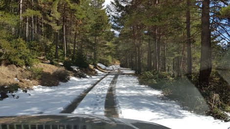 We packed our sacks and braced ourselves for sector L’Estany, 400m higher. This was looking like a poor decision, as the narrow and winding (but tarmacced) forest road disappeared under 6″ of snow, but we pressed on and made it to the parking without incident.