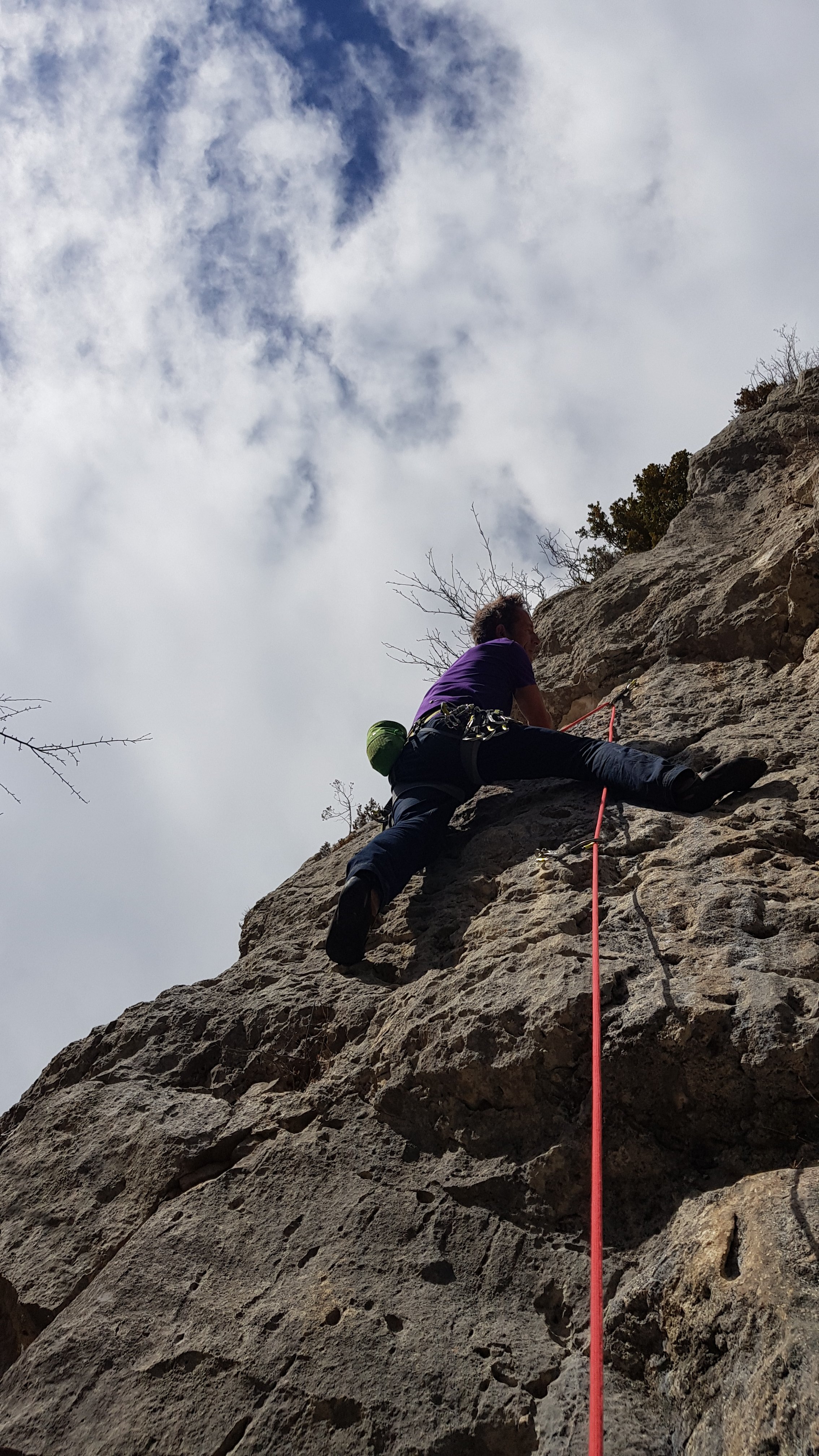 Sector Rock de L’Alou is the lowest, at just over 1,000m, and a complete disappointment. A very shiny grey slab of desperate looking 4s and 5s on the left side and another vertical wall of desperate looking routes around the corner to the right (at least these are 7s and 8s!) In between is a promising bit of rock with a couple of 6as one of which has a 7a extension. Qué Masda, 6a, was really polished and tough and Perestroika, 7a, had both of those qualities in spades!