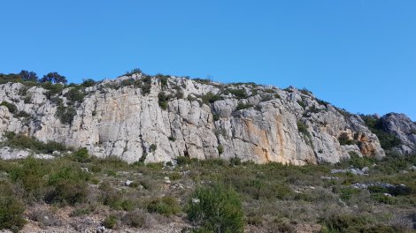 The other nearby sector, Gratounette, is only 5 minutes down the road and situated immediately above it. About 20 routes, mostly 5b to 6b and up to 30m high. There’s a topo here http://deversud.com/telechargements/fichiers/1471595846.topo.escalade.falaise.gratounette.opoul.pdf and it looks well worth a day’s visit. Parking coordinates are at https://goo.gl/maps/G7cGKyBjnZy