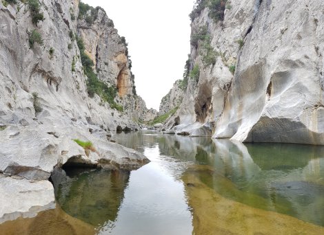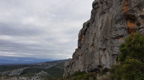 The other nearby sector, Gratounette, is only 5 minutes down the road and situated immediately above it. About 20 routes, mostly 5b to 6b and up to 30m high. There’s a topo here http://deversud.com/telechargements/fichiers/1471595846.topo.escalade.falaise.gratounette.opoul.pdf and it looks well worth a day’s visit. Parking coordinates are at https://goo.gl/maps/G7cGKyBjnZy