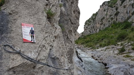 The sector Gouleyrous is a lovely spot, set either side of the river as it has cut its way through the limestone to form a natural gorge. Great swimming spot (though this is banned) and the routes I managed to identify looked to be mostly 4s and 5s on well bolted slabs. There’s a fun bit of cable / via ferrata to access the upper gorge and probably more of the routes (the topo has quite a range of grades).